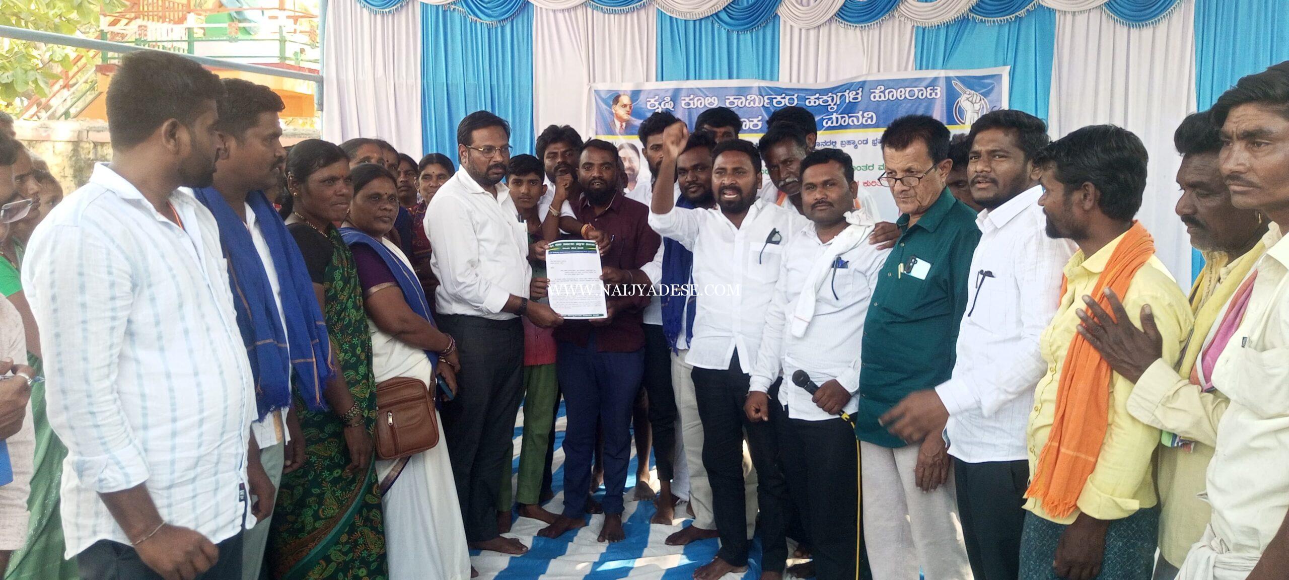 ಮಾನ್ವಿ : ತಾಲೂಕಿನ ನಕ್ಕುಂದಿ ಗ್ರಾಮ ಪಂಚಾಯತಿ ಕಾರ್ಯಾಲಯದ ಮುಂದೆ ಕೃಷಿ ಕೂಲಿ ಕಾರ್ಮಿಕರ ಹಕ್ಕುಗಳ ಹೋರಾಟ ಸಮಿತಿ ವತಿಯಿಂದ ವಿವಿಧ ಬೇಡಿಕೆಗಳನ್ನು ಈಡೇರಿಸುವಂತೆ ಆಗ್ರಹಿಸಿ ಪ್ರತಿಭಟನೆ ನಡೆಸಿ, ತಾಲೂಕ ಪಂಚಾಯತ್ ಕಾರ್ಯನಿರ್ವಾಹಕ ಅಧಿಕಾರಿ ಖಾಲಿದ್ ಅಹ್ಮದ್ ಅವರಿಗೆ ಮನವಿ ಪತ್ರ ಸಲ್ಲಿಸಲಾಯಿತು.