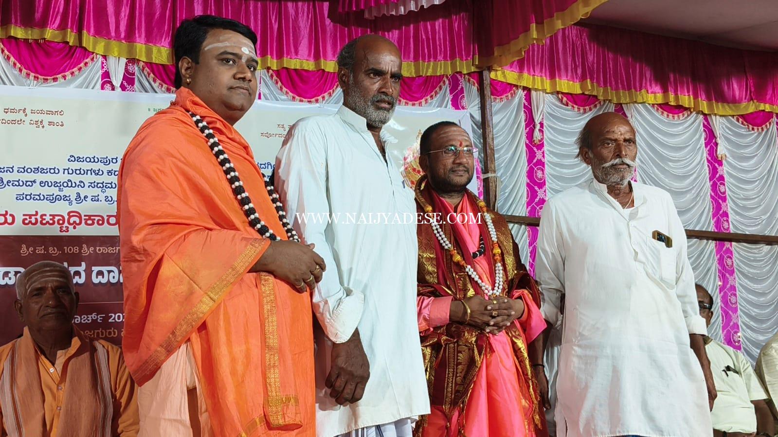 ತಾಳಿಕೋಟಿ: ತಾಲೂಕಿನ ನಾವದಗಿ ಗ್ರಾಮ ಬ್ರಹನ್ಮಠದ ಷ.ಬ್ರ.ಶ್ರೀ ರಾಜ ಗುರು ರಾಜೇಂದ್ರ ಒಡೆಯರ ಶಿವಾಚಾರ್ಯ ಮಹಾಸ್ವಾಮಿಗಳ ಗುರು ಪಟ್ಟಾಧಿಕಾರದ ದ್ವಿತೀಯ ವಾರ್ಷಿಕೋತ್ಸವದಲ್ಲಿ ಚಬನೂರ ಗ್ರಾಮದ ಸಿದ್ದೀಪುರುಷ ರಾಮಲಿಂಗೇಶ್ವರ ಮಠದ ಪರಮ ಪೂಜ್ಯರಾದ ಜ್ಯೋತಿಷ್ಯ ರತ್ನ ರಾಮಲಿಂಗಯ್ಯ ಮಹಾಸ್ವಾಮಿಗಳಿಗೆ ಗೌರವ ಸಮರ್ಪಣೆ ಸಲ್ಲಿಸಲಾಯಿತು. ಕಾರ್ಯಕ್ರಮದ ಸಾನಿಧ್ಯ ವಹಿಸಿ ಕೊಡೆಕಲ್ಲದ ಪೂಜ್ಯ ಶಿವಕುಮಾರ ಮಹಾಸ್ವಾಮಿಗಳು ಮಾತನಾಡಿ ಪೂಜ್ಯ ರಾಮಲಿಂಗಯ್ಯ ಮಹಾಸ್ವಾಮಿಗಳು ಶ್ರೀ ರಾಜೇಂದ್ರ ಒಡೆಯರ್ ಅವರ ಎಲ್ಲ ಧರ್ಮ ಕಾರ್ಯಗಳಲ್ಲಿ ಬೆನ್ನೆಲುಬಾಗಿ ನಿಂತು ಅವರಿಗೆ ಸಹಕರಿಸುತ್ತಿದ್ದಾರೆ. ಅವರು ತಮ್ಮ ಚಬನೂರಿನ ಮಠದಲ್ಲಿ ಏಪ್ರಿಲ್ ತಿಂಗಳಲ್ಲಿ ಮಕ್ಕಳಿಗೆ ಧಾರ್ಮಿಕ ಶಿಕ್ಷಣದ ತರಬೇತಿ ಕೊಡುವ ಬೇಸಿಗೆ ರಜೆಯ ವಿಶೇಷ ಸಿಬಿರವನ್ನು ಹಮ್ಮಿಕೊಂಡಿದ್ದಾರೆ ಎಲ್ಲ ಪಾಲಕರು ತಮ್ಮ ಮಕ್ಕಳನ್ನು ಈ ಕಾರ್ಯಕ್ರಮಕ್ಕೆ ಕಳಿಸಬೇಕು. ಮಕ್ಕಳಿಗೆ ಶಿಕ್ಷಣದೊಂದಿಗೆ ಒಳ್ಳೆಯ ಸಂಸ್ಕಾರಗಳನ್ನು ಕಲಿಸಿಕೊಡುವುದು ಇಂದಿನ ಅಗತ್ಯವಾಗಿದೆ ಎಂದು ತಿಳಿಸಿದರು. ಸಾಸನೂರ ತುಂಬಿಗೀಯ ಪೂಜ್ಯ ಮಹಾಂತಲಿಂಗ ಶಿವಾಚಾರ್ಯ ಮಹಾಸ್ವಾಮಿಗಳು ದಿವ್ಯ ಸಾನಿಧ್ಯ ವಹಿಸಿದ್ದರು. ಷ.ಬ್ರ.ಶ್ರೀ ರಾಜ ಗುರು ರಾಜೇಂದ್ರ ಒಡೆಯರ ಶಿವಾಚಾರ್ಯ ಮಹಾಸ್ವಾಮಿಗಳು ಸಮ್ಮುಖ ವಹಿಸಿದ್ದರು. ಕಾರ್ಯಕ್ರಮದಲ್ಲಿ ದೇವದುರ್ಗದ ಪರಮ ಪೂಜ್ಯರಾದ ಕಪಿಲ ಸಿದ್ದರಾಮ ಶಿವಾಚಾರ್ಯರು,ದೇವರ ಹಿಪ್ಪರಗಿ ಪರದೇಶಿ ಮಠದ ಶಿವಯೋಗಿ ಶಿವಾಚಾರ್ಯರು, ಕಲ್ಮಠದ ಸಿದ್ದಲಿಂಗ ದೇವರು, ಮಾತೋಶ್ರೀ ಸಾವಿತ್ರಿ ಅಮ್ಮನವರು,ಡಾ.ಗುರುಲಿಂಗಯ್ಯ ಹಿರೇಮಠ,ಶರಣಗೌಡ ಇಬ್ರಾಹಿಂಪೂರ,ರವಿಧಣಿ ದೇಶಮುಖ,ಎಸ್.ಎಸ್.ಹಾವರಗಿ,ಪುರಾಣಿಕ ರಾಚಯ್ಯ ಹಿರೇಮಠ,ಡಾ.ಸೋಮಶೇಖರಯ್ಯ ಹಿರೇಮಠ, ಸಾಹಿತಿ ಬಸವರಾಜ ಗೊರಜಿ ಮತ್ತಿತರರು ಇದ್ದರು.