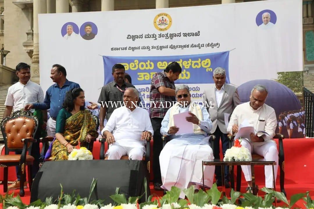 ಇಂದು ನಮ್ಮ ವಿಜ್ಞಾನ ಮತ್ತು ತಂತ್ರಜ್ಞಾನ ಇಲಾಖೆ ವತಿಯಿಂದ ರಾಜ್ಯದ ಗ್ರಾಮೀಣ ಶಾಲಾ ವಿದ್ಯಾರ್ಥಿಗಳಿಗೆ ಖಗೋಳ ವಿಜ್ಞಾನದ ಬಗ್ಗೆ ಆಸಕ್ತಿ ಮೂಡಿಸುವ ಸಲುವಾಗಿ ಆಧುನಿಕ ತಂತ್ರಜ್ಞಾನದ ಸ್ಪರ್ಶನೀಡಿರುವ ‘ಶಾಲೆಯ ಅಂಗಳದಲ್ಲಿ ತಾರಾಲಯ’ (ಸಂಚಾರಿ ಡಿಜಿಟಲ್ ತಾರಾಲಯ) ಯೋಜನೆಗೆ ಸನ್ಮಾನ್ಯ ಮುಖ್ಯಮಂತ್ರಿಗಳಾದ ಶ್ರೀ ಸಿದ್ದರಾಮಯ್ಯನವರು ಹಾಗೂ ಮಾನ್ಯ ಗ್ರಾಮೀಣಾಭಿವೃದ್ಧಿ ಮತ್ತು ಪಂಚಾಯತ್ ರಾಜ್, ಮಾಹಿತಿ ತಂತ್ರಜ್ಞಾನ ಮತ್ತು ಜೈವಿಕ ತಂತ್ರಜ್ಞಾನ ಸಚಿವರಾದ ಶ್ರೀ ಪ್ರಿಯಾಂಕ್ ಖರ್ಗೆ ಅವರೊಂದಿಗೆ ವಿಧಾನಸೌಧದ ಭವ್ಯ ಮೆಟ್ಟಿಲುಗಳ ಮೇಲೆ ಚಾಲನೆ ನೀಡಲಾಯಿತು.
