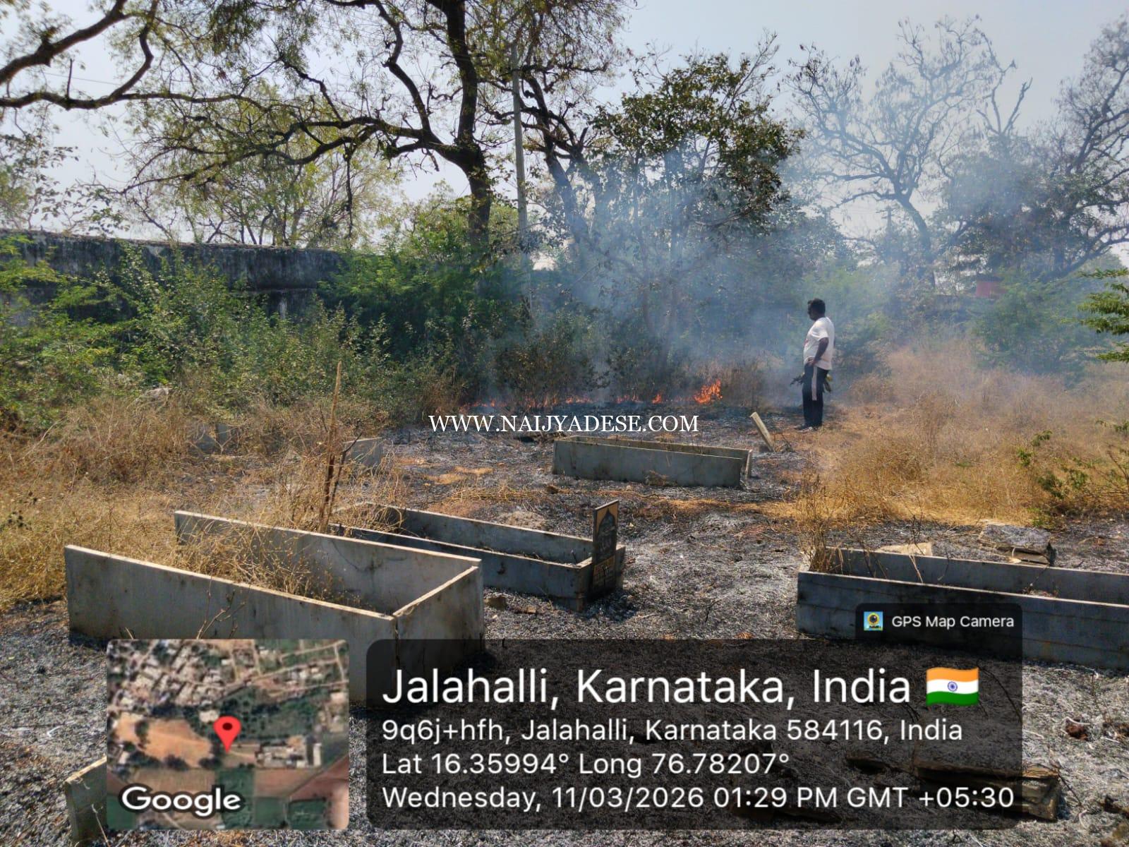 ಜಾಲಹಳ್ಳಿ : ಮಾ 12 ಗ್ರಾಮದ ಮುಸ್ಲಿಂ ಬಾಂಧವರ ಕಬರಸ್ಥಾನದಲ್ಲಿರುವ ಸರ್ವೇ ನಂಬರ್ 205 ಮತ್ತು 160ರಲ್ಲಿ ಆಕಸ್ಮಿಕವಾಗಿ ಬೆಂಕಿ ಕಾಣಿಸಿಕೊಂಡಿದ್ದು, ಅಲ್ಲಿ ಇದ್ದ ಹಸಿರಾದ ಗಿಡಗಳು ಸುಟ್ಟು ಭಸ್ಮವಾಗಿವೆ.