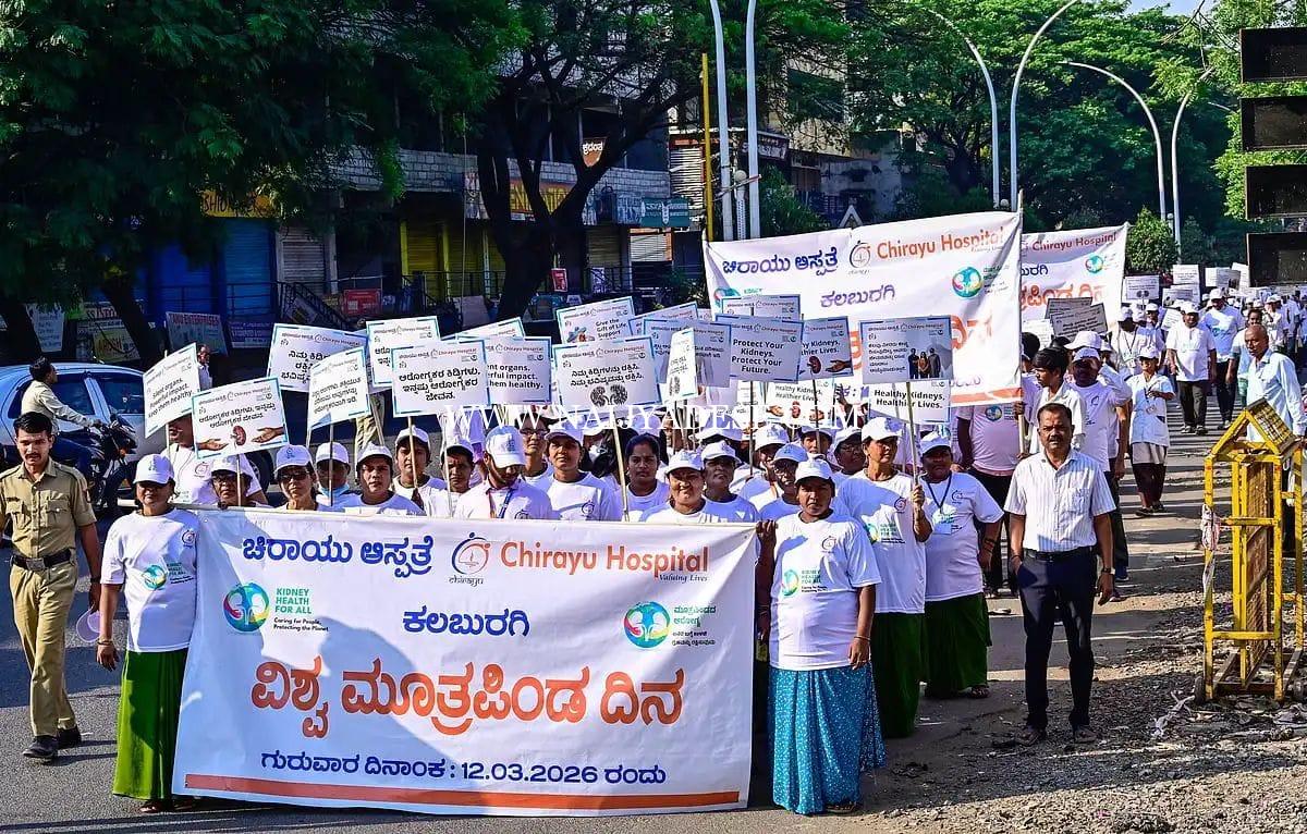 ವಿಶ್ವ ಕಿಡ್ನಿ ದಿನದ ಅಂಗವಾಗಿ ಚಿರಾಯು ಆಸ್ಪತ್ರೆಯಿಂದ ನಗರದಲ್ಲಿ ಗುರುವಾರ ವಾಕಥಾನ್ ನಡೆಯಿತು.ಎಲ್ಲರಿಗೂ ಕಿಡ್ನಿ ಆರೋಗ್ಯ-ಜನರ ಕಾಳಜಿ, ಭೂಮಿಯ ರಕ್ಷಣೆ’ ಘೋಷ ವಾಕ್ಯದಡಿ ನಡೆದ ವಾಕಥಾನ್ನಲ್ಲಿ ಚಿರಾಯು ಆಸ್ಪತ್ರೆಯ ವೈದ್ಯರು-ಸಿಬ್ಬಂದಿ, ಎಚ್ಕೆಇ ಸಂಸ್ಥೆಯ ನರ್ಸಿಂಗ್ ಕಾಲೇಜು ಸೇರಿದಂತೆ ವಿವಿಧ ಅರೆ ವೈದ್ಯಕೀಯ ಕಾಲೇಜು ವಿದ್ಯಾರ್ಥಿಗಳು ಹೆಜ್ಜೆಹಾಕಿದರು.ಚಿರಾಯು ಆಸ್ಪತ್ರೆಯಿಂದ ಆರಂಭವಾದ ವಾಕಥಾನ್ ಸರ್ದಾರ್ ವಲ್ಲಭಭಾಯಿ ಪಟೇಲ್ ವೃತ್ತ, ಜಿಲ್ಲಾಡಳಿತ ಭವನ, ಎಸ್.ಬಿ.ಪೆಟ್ರೋಲ್ ಬಂಕ್ ಮೂಲಕ ಜಗತ್ ವೃತ್ತ ತಲುಪಿತು. ಬಳಿಕ ಅಲ್ಲಿಂದ ಜಗತ್ ವೃತ್ತ, ಅನ್ನಪೂರ್ಣ ಕ್ರಾಸ್, ಎಸ್.ಬಿ.ಪೆಟ್ರೊಲ್ ಬಂಕ್ ಮೂಲಕ ಮರಳಿ ಚಿರಾಯು ಆಸ್ಪತ್ರೆ ತಲುಪಿತು. ನಾಲ್ಕು ಕಿ.ಮೀಗೂ ಹೆಚ್ಚು ನಡೆದ ವಾಕಥಾನ್ನಲ್ಲಿ ವಿದ್ಯಾರ್ಥಿಗಳು ‘ಕಿಡ್ನಿ ಆರೋಗ್ಯ’ದ ಕುರಿತ ತರಹೇವಾರಿ ಭಿತ್ತಿ ಪತ್ರಗಳನ್ನು ಹಿಡಿದು ಜಾಗೃತಿ ಮೂಡಿಸಿದರು. ಘೋಷಣೆಗಳನ್ನೂ ಮೊಳಗಿಸಿದರು.