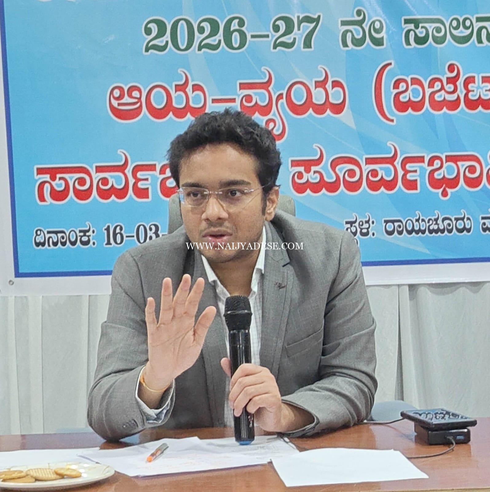 ಈ ವೇಳೆ ಜುಬಿನ್ ಮೊಹಾಪಾತ್ರ ಅವರು ಮಾತನಾಡಿ, ರಾಯಚೂರು ನಗರದ ಸಮಗ್ರ ಅಭಿವೃದ್ಧಿಗೆ ಪೂರಕವಾದ ಬಜೆಟ್ ಸಿದ್ಧಪಡಿಸಲು ಸಾರ್ವಜನಿಕರ ನೇರ ಪಾಲ್ಗೊಳ್ಳುವಿಕೆ ಅತ್ಯಗತ್ಯವಾಗಿದೆ ಎಂದರು.