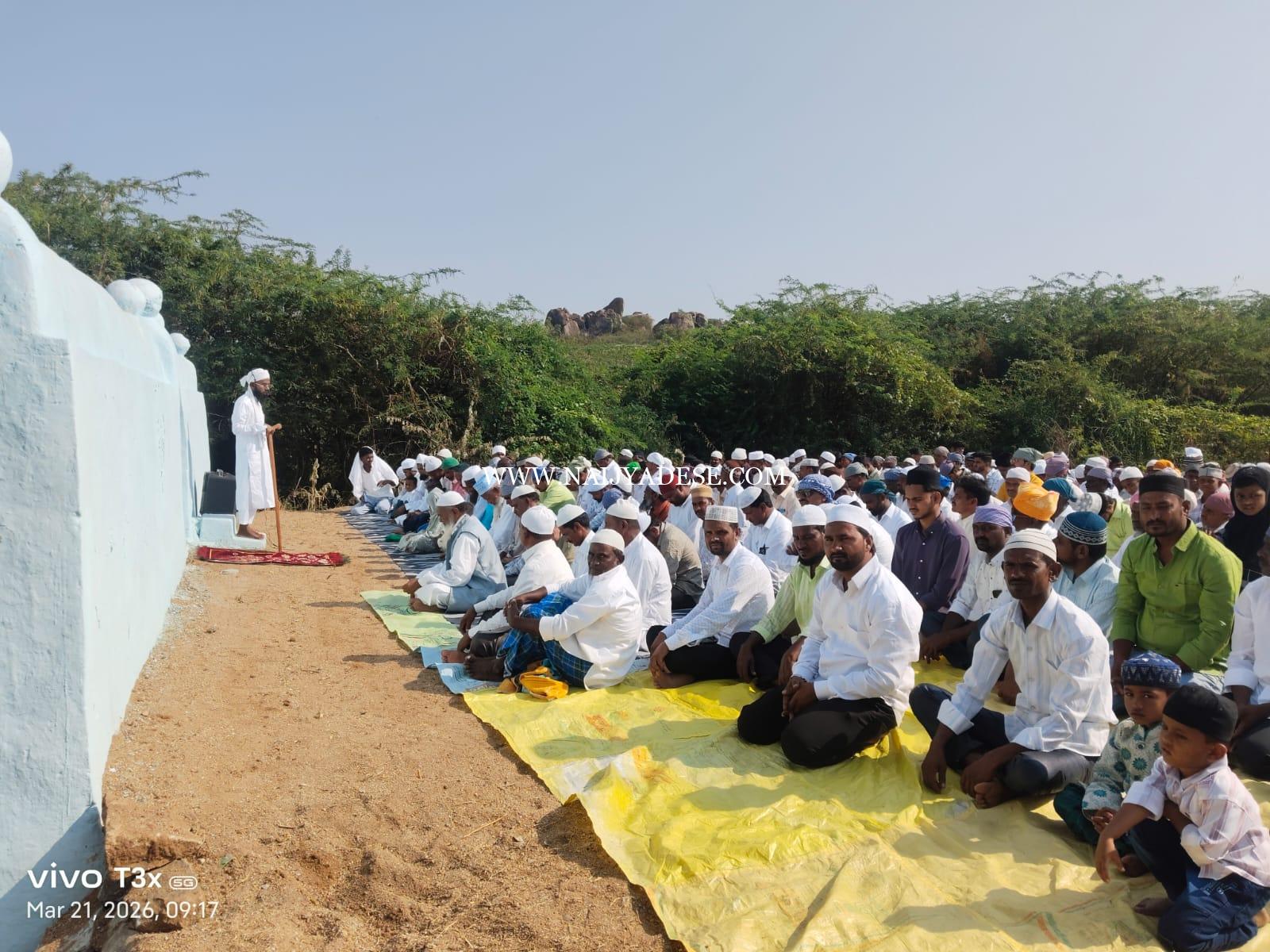 ನಂತರ ಮುಸ್ಲಿಂ ಬಾಂಧವರೆಲ್ಲ ಸೇರಿ ನಮಾಜ್ ಮಾಡುವ ಮುಖಾಂತರ ವಿಶೇಷ ಪಾರ್ಥನೆ ಸಲ್ಲಿಸಿ ನಂತರ ಗ್ರಾಮದ ಸರ್ವ ಜನಾಂಗದವರಿಗೆ ಅಪ್ಪುಗೆ ನೀಡಿ ಹಸ್ತಲಾಘವ ನೀಡುವ ಮುಖಾಂತರ ರಂಜಾನ ಹಬ್ಬವನ್ನು ಆಚರಿಸಿದರು.