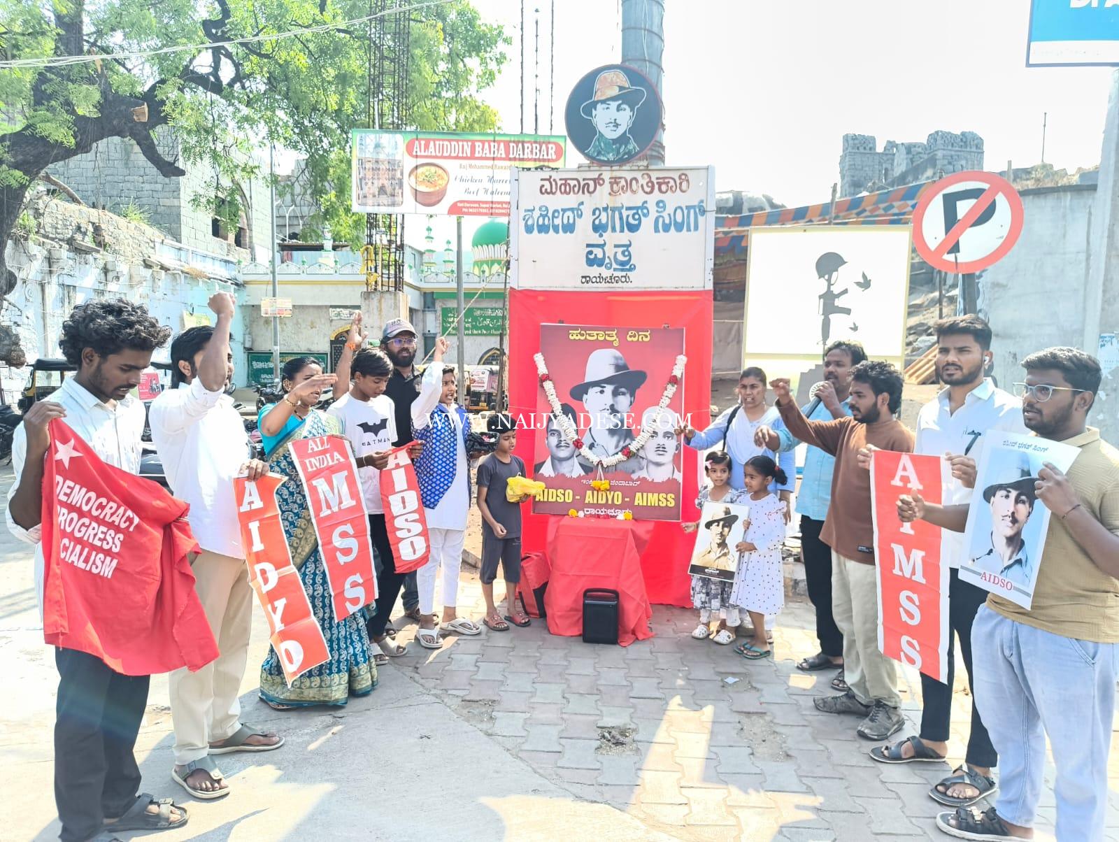 ರಾಯಚೂರು : ನಗರದ ಭಗತ್ ಸಿಂಗ್ ಸರ್ಕಲ್ ನಲ್ಲಿ ಎಐಡಿಎಸ್ಓ, ಎಐಡಿವೈಓ, ಎಐಎಂಎಸ್ಎಸ್ ಸಂಘಟನೆಗಳಿಂದ ನಮ್ಮ ದೇಶದ ಸ್ವಾತಂತ್ರ್ಯ ಸಂಗ್ರಾಮದ ಮಹಾನ್ ಕ್ರಾಂತಿಕಾರಿಗಳಾದ ಭಗತ್ ಸಿಂಗ್, ಸುಖದೇವ್, ರಾಜಗುರು ಅವರ ಹುತಾತ್ಮ ದಿನವನ್ನು ಆಚರಿಸಲಾಯಿತು