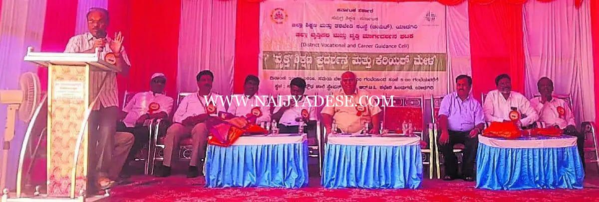 ನಗರದ ಸರ್ಕಾರಿ ಪ್ರೌಢಶಾಲೆಯಲ್ಲಿ ಶುಕ್ರವಾರ ಶಾಲಾ ಶಿಕ್ಷಣ ಇಲಾಖೆ, ಡಯಟ್ ಹಾಗೂ ಪದವಿ ಪೂರ್ವ ಶಿಕ್ಷಣ ಇಲಾಖೆ ಆಯೋಜಿಸಿದ್ದ ‘ವೃತ್ತಿ ಶಿಕ್ಷಣ ಪ್ರದರ್ಶನ ಮತ್ತು ಕೆರಿಯರ್ ಮೇಳ’ ಉದ್ಘಾಟಿಸಿ ಅವರು ಮಾತನಾಡಿದರು.