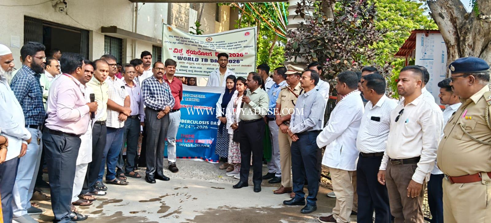 ಜಿಲ್ಲಾಡಳಿತ, ಜಿಲ್ಲಾ ಪಂಚಾಯತ, ಜಿಲ್ಲಾ ಆರೋಗ್ಯ ಮತ್ತು ಕುಟುಂಬ ಕಲ್ಯಾಣ ಇಲಾಖೆ, ಜಿಲ್ಲಾ ಕ್ಷಯರೋಗ ನಿರ್ಮೂಲನಾ ಕಾರ್ಯಕ್ರಮ, ರಿಮ್ಸ್ ಮೆಡಿಕಲ್ ಕಾಲೇಜ್, ನವೋದಯ ಮೆಡಿಕಲ್ ಕಾಲೇಜ್, ರಿಮ್ಸ್ ನರ್ಸಿಂಗ್ ಕಾಲೇಜ್, ಪೋಲಿಸ್ ಇಲಾಖೆ, ಮಹಾನಗರ ಪಾಲಿಕೆ ಜಿಲ್ಲಾ ತರಬೇತಿ ಕೇಂದ್ರ, ಹಾಗೂ ವಿವಿಧ ಸಂಘಟನೆಗಳ ಆಶ್ರಯದಲ್ಲಿ ಜಿಲ್ಲಾ ಆರೋಗ್ಯ ಮತ್ತು ಕುಟುಂಬ ಕಲ್ಯಾಣಾಧಿಕಾರಿಗಳ ಕಾರ್ಯಾಲಯದ ಆವರಣದಲ್ಲಿ ಜಾಗೃತಿ ಜಾಥಾ ಚಾಲನೆಗೊಳಿಸಿ ಮಾತನಾಡುತ್ತಾ, ವರ್ಷ ವೈದ್ಯಕೀಯ ಪರಿಭಾಷೆಯಲ್ಲಿ ಹೇಳುವಂತೆ ಎರಡು ವಾರಕ್ಕಿಂತ ಹೆಚ್ಚು ದಿನಗಳ ಕೆಮ್ಮು ಇದ್ದಲ್ಲಿ ಯಾರು ನಿರ್ಲಕ್ಷ್ಯ ಮಾಡಬೇಡಿ, ಮತ್ತು ಸಾರ್ವಜನಿಕ ಸ್ಥಳಗಳಲ್ಲಿ ಕೆಮ್ಮುವ, ಉಗುಳುವ, ರೂಡಿಗಳನ್ನು ನಿಯಂತ್ರಣ ಮಾಡಿದಲ್ಲಿ ಹಾಗೂ ಆರೋಗ್ಯಇಲಾಖೆಯ ಕಾರ್ಯ ಚಟುವಟಿಕೆಗಳಿಗೆ ಬೆಂಬಲವಾಗಿ ಇದ್ದಲ್ಲಿ ಕ್ಷಯರೋಗ ನಿರ್ಮೂಲನೆ ಸಾಧ್ಯವಿದೆ ಎಂದು ತಿಳಿಸಿದರು.