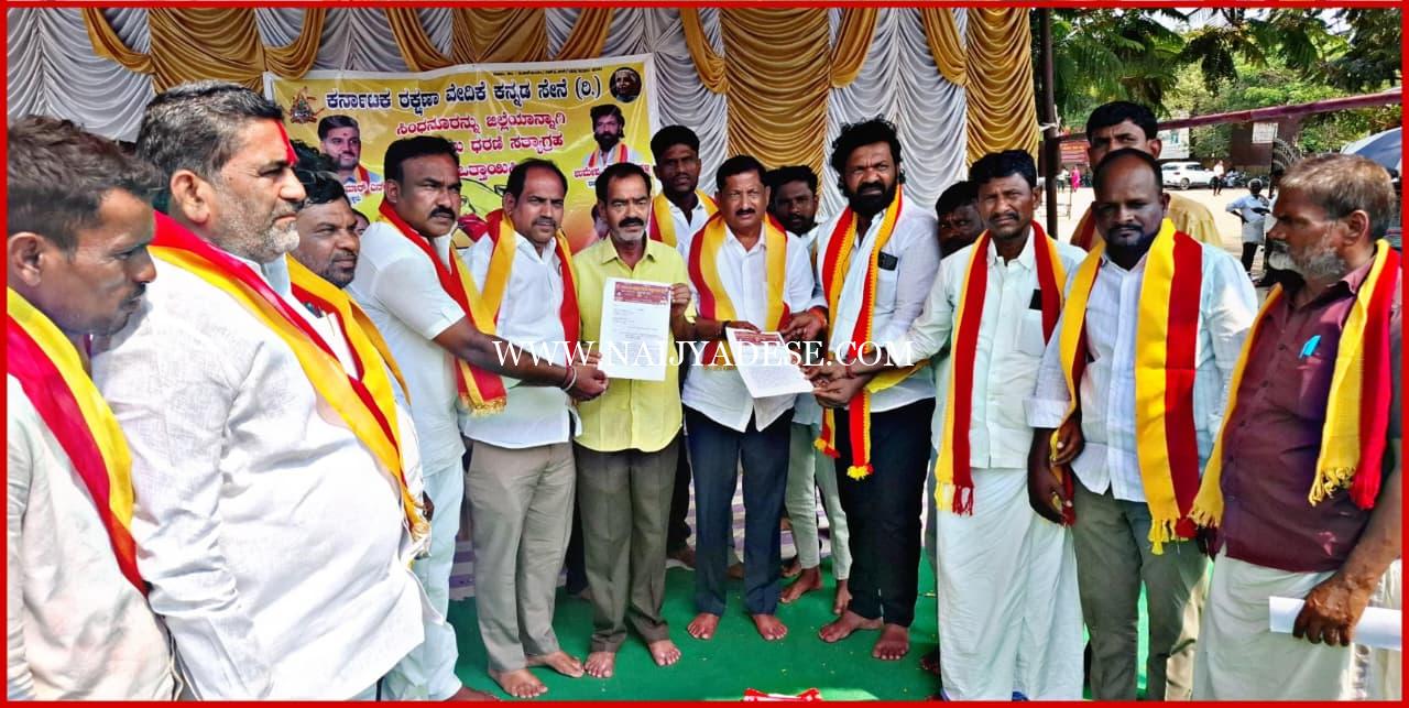 ಸಿಂಧನೂರು : ಕರ್ನಾಟಕ ರಕ್ಷಣಾ ವೇದಿಕೆ ಕನ್ನಡಸೇನೆ (ರಿ) ವತಿಯಿಂದ ಸಿಂಧನೂರು ನಗರವನ್ನು ಪ್ರತ್ಯೇಕ ಜಿಲ್ಲೆಯನ್ನಾಗಿ ಘೋಷಿಸುವಂತೆ ಒತ್ತಾಯಿಸಿ ಸೋಮವಾರ ತಹಶೀಲ್ ಕಚೇರಿ ಮುಂಭಾಗದಲ್ಲಿ ಧರಣಿ ಸತ್ಯಾಗ್ರಹ ನಡೆಸಲಾಯಿತು.