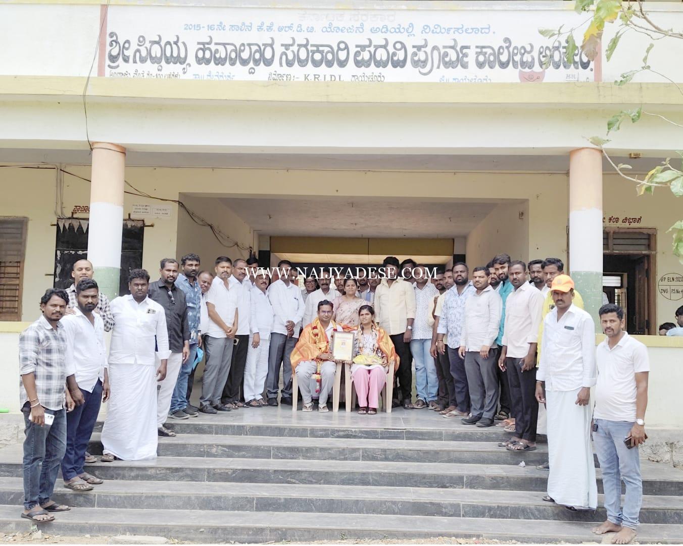 ಅರಕೇರಾ ಪಟ್ಟಣದಲ್ಲಿನ ಶ್ರೀಸಿದ್ದಯ್ಯ ಹವಲ್ದಾರ ಸರಕಾರಿ ಪದವಿ ಪೂರ್ವ ಕಾಲೇಜಿನಲ್ಲಿ ಗೌರವ ಡಾಕ್ಟರೇಟರ್ ಪದವಿ ಪಡೆದಿರುವ ಇಂಗ್ಲೀಷ ಉಪನ್ಯಾಸಕರಾದ ಮಂಜುನಾಥ ಇವರಿಗೆ ಕೆ.ಶಿವನಗೌಡನಾಯರವರ ಅಭಿಮಾನಿ ಬಳಗದವತಿಯಿಂದ ಹಮ್ಮಕೊಂಡಿದ್ದ ಅಭಿನಂದಾನ ಸಮಾರಂಭದಲ್ಲಿ ಸನ್ಮಾನಿಸಿ ನೆನೆಪಿನಕಾಣಿಕೆ ನೀಡಲಾಯಿತು.