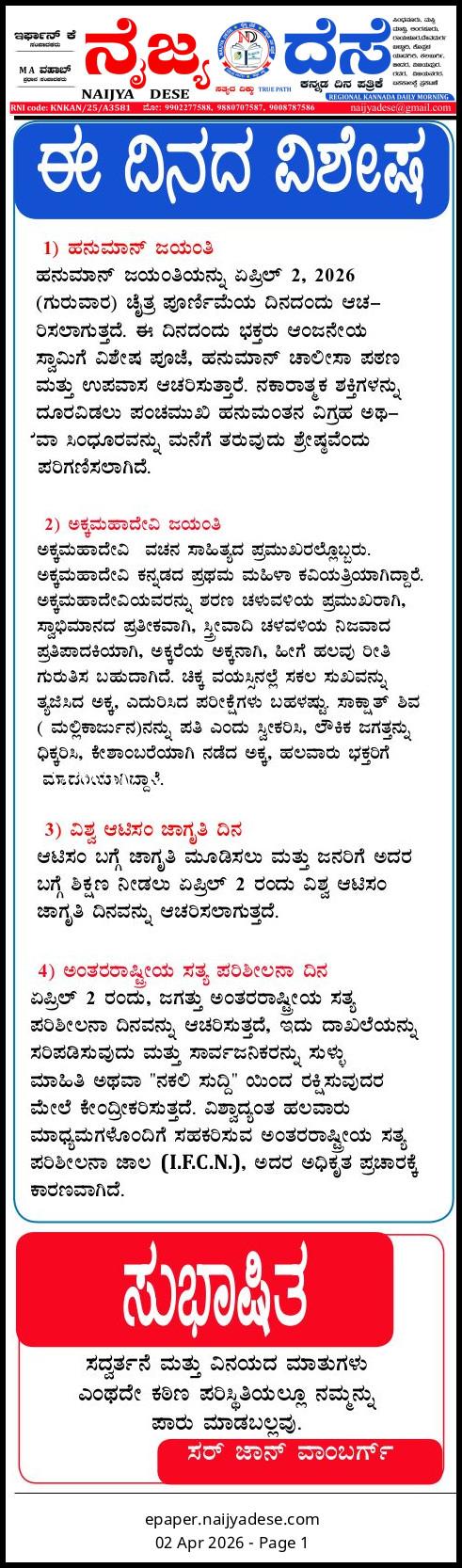 ಈ ದಿನದ ವಿಶೇಷ