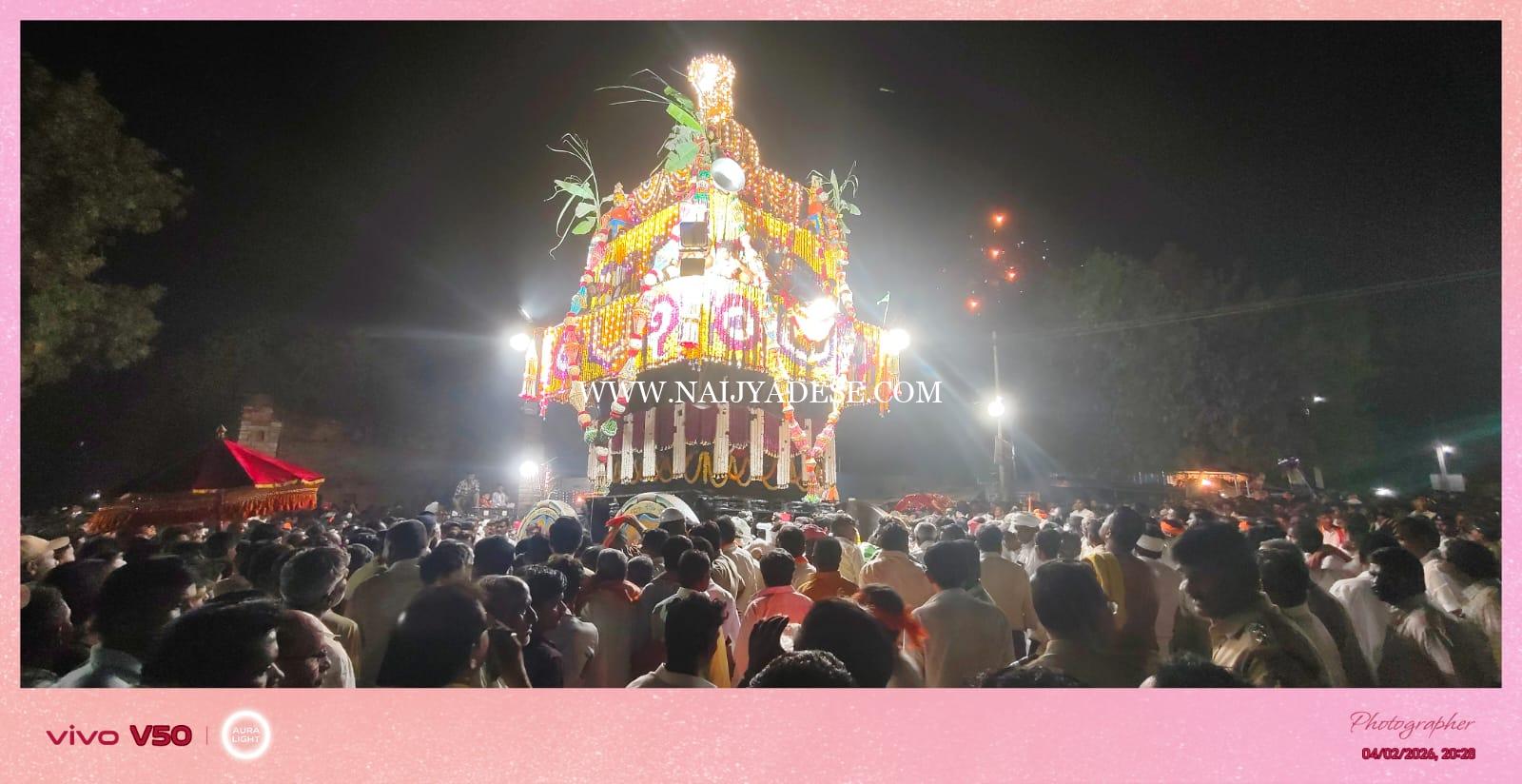 ಸಂಜೆ ವೇಳೆಗೆ ಪಲ್ಲಕ್ಕಿ ಮೆರವಣಿಗೆ ನಡೆಯಿತು. ಚಿಕ್ಕಲ್ ಮನೆತನದವರ ನೇತೃತ್ವದಲ್ಲಿ ರಥದ ಹಗ್ಗವನ್ನು ತರಲಾಗಿದ್ದು, ನಂತರ ಭಕ್ತರು ಹೊಸ ವಸ್ತ್ರ ಧರಿಸಿ ರಥೋತ್ಸವಕ್ಕೆ ಸಜ್ಜಾದರು.