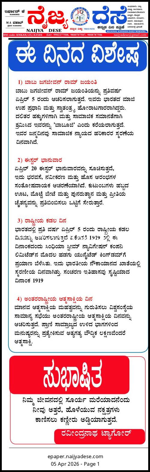 ಈ ದಿನದ ವಿಶೇಷ