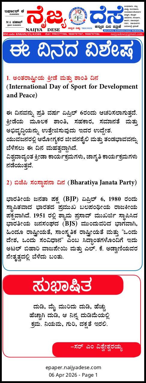 ಈ ದಿನದ ವಿಶೇಷ