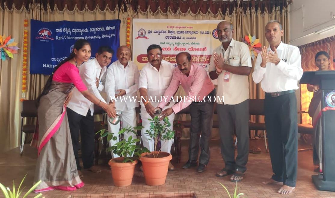 ಮುಖ್ಯ ಅತಿಥಿಗಳಾದ ರಾಷ್ಟ್ರೀಯ ಸೇವಾ ಯೋಜನೆಯ ಯೋಜನಾಧಿಕಾರಿ ರಾಜು ಕಪಾಲಿ ಮಾತನಾಡಿ ಎನ್. ಎಸ್. ಎಸ್ ಎಂದರೆ ನಾನು ಸೇವೆಗೆ ಸದಾ ಸಿದ್ಧ ಎಂಬ ಅರ್ಥವನ್ನು ನೀಡಲಾಗಿದ್ದು ಪ್ರಶಿಕ್ಷಣಾರ್ಥಿಗಳು ಶ್ರಮಧಾನದಲ್ಲಿ ಭಾಗವಹಿಸಿ ನಮ್ಮೆಲ್ಲರ ಆದ್ಯ ಕರ್ತವ್ಯವಾದ ಪರಿಸರ ಸಂರಕ್ಷಣೆ ಮಾಡಬೇಕು. ಎನ್ಎಸ್ಎಸ್ ವಿದ್ಯಾರ್ಥಿಗಳು ದೇಶ ಕಟ್ಟುವಂತಹ ಪ್ರಗತಿಪರ ಚಿಂತನೆಗಳನ್ನ ಮಾಡಬೇಕು ಎಂದರು. ಸೇವಾ ಯೋಜನೆ ಕಾರ್ಯಕ್ರಮಾಧಿಕಾರಿ ಎ.ಎ.ಗಂಗನಗೌಡರ ಪ್ರಸ್ತಾವಿಕವಾಗಿ ಮಾತನಾಡಿ ಎನ್ಎಸ್ಎಸ್ ವಾರ್ಷಿಕ ಶಿಬಿರವು ರಾಷ್ಟ್ರೀಯ ಸೇವಾ ಯೋಜನೆಯ (NSS) ಒಂದು ಪ್ರಮುಖ ಕಾರ್ಯಕ್ರಮವಾಗಿದೆ. ಇದು ಏಳು ದಿನಗಳ ಕಾಲ ನಡೆಯುತ್ತದೆ ಮತ್ತು ಸ್ವಯಂಸೇವಕರು ಗ್ರಾಮೀಣ ಪ್ರದೇಶದಲ್ಲಿ ಸಮಾಜ ಸೇವಾ ಚಟುವಟಿಕೆಗಳಲ್ಲಿ ಭಾಗವಹಿಸುವಂತೆ ಮಾಡುತ್ತದೆ. ಈ ಶಿಬಿರಗಳು ವಿದ್ಯಾರ್ಥಿಗಳಲ್ಲಿ ವ್ಯಕ್ತಿತ್ವ ವಿಕಸನ, ಸಾಮಾಜಿಕ ಜವಾಬ್ದಾರಿ ಮತ್ತು ರಾಷ್ಟ್ರ ನಿರ್ಮಾಣದ ಬಗ್ಗೆ ಅರಿವು ಮೂಡಿಸುತ್ತವೆ ಮತ್ತು ನೀರು, ನೈರ್ಮಲ್ಯ, ಆರೋಗ್ಯ ಮುಂತಾದ ಸಮಸ್ಯೆಗಳನ್ನು ಪರಿಹರಿಸುವಲ್ಲಿ ಸಹಾಯ ಮಾಡುತ್ತವೆ ಎಂದು ತಿಳಿಸಿದರು.