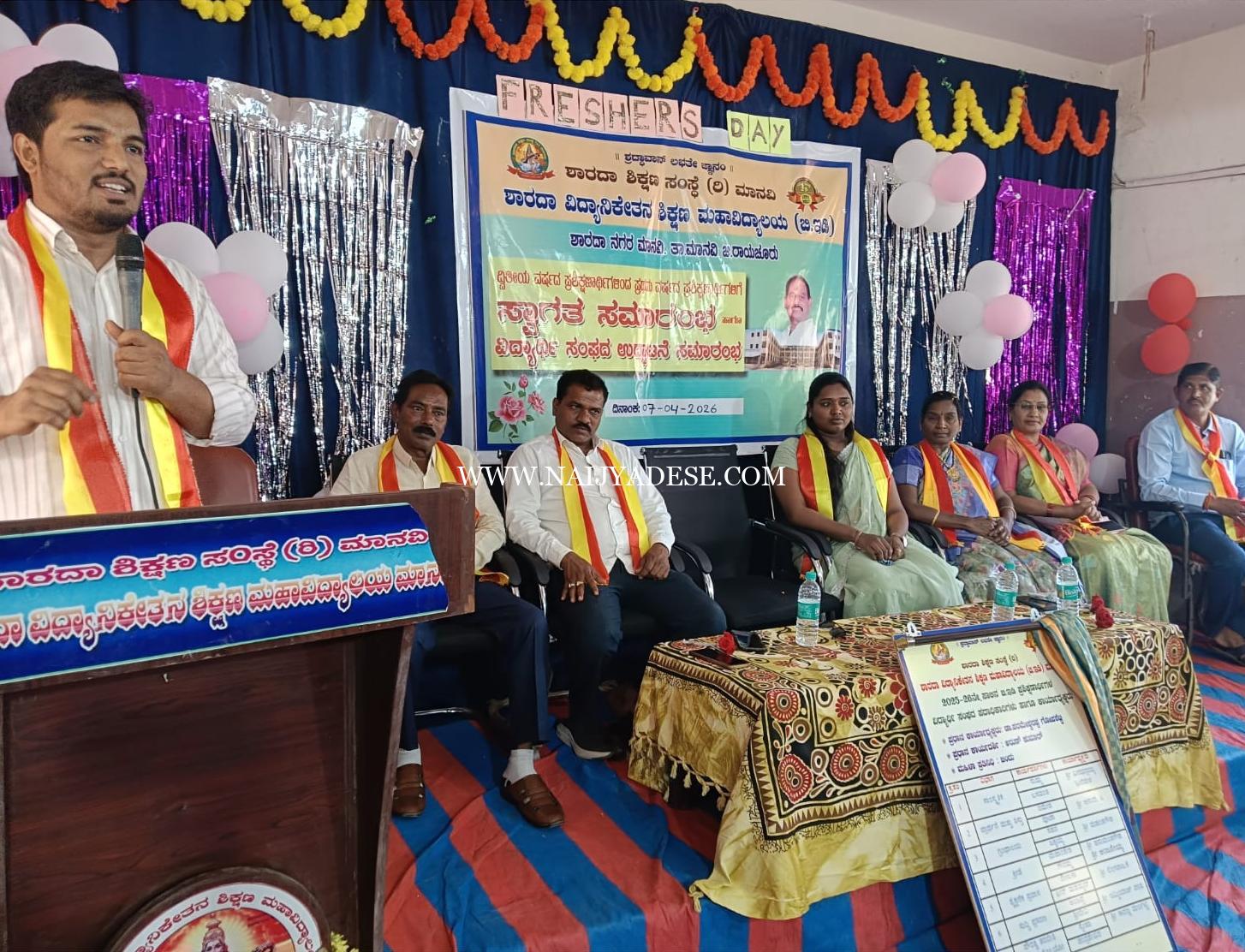 ಮಾನ್ವಿ: ಮಾನ್ವಿ ಪಟ್ಟಣದಲ್ಲಿ ಮೊಟ್ಟ ಮೊದಲ ಆಂಗ್ಲ ಮಾಧ್ಯಮ ಶಿಕ್ಷಣವನ್ನು ಪ್ರಾರಂಭ ಮಾಡಿ ಹಲವಾರು ವಿದ್ಯಾರ್ಥಿಗಳಿಗೆ ದಾರಿದೀಪವಾದ ಮಧುಸೂದನ್ ಗುಪ್ತಾ ಜಿಯವರು ಮಾನ್ವಿ ಭಾಗದ ವಿದ್ಯಾರ್ಥಿಗಳಿಗೆ ಶೈಕ್ಷಣಿಕ ಸೇವೆ ಅಪಾರವಾದದ್ದು ಎಂದು ಜಿಶಾನ ಅಕಿಲ್ ಸಿದ್ದಿಕಿ ಸಿಂಡಿಕೇಟ್ ಸದಸ್ಯರು ಆದಿಕವಿ ಶ್ರೀ ಮಹರ್ಷಿ ವಿಶ್ವ ವಿದ್ಯಾಲಯ ರಾಯಚೂರು ಕಾರ್ಯಕ್ರಮ ಉದ್ಘಾಟಿಸಿ ಮಾತನಾಡಿದರು.ಪಟ್ಟಣದ ಶಾರದಾ ವಿದ್ಯಾನಿಕೇತನ ಶಿಕ್ಷಣ ಮಹಾವಿದ್ಯಾಲಯದಲ್ಲಿ ದ್ವಿತೀಯ ವರ್ಷದ ಪ್ರಶಿಕ್ಷಣಾರ್ಥಿಗಳಿಂದ ಪ್ರಥಮ ವರ್ಷದ ಪ್ರಶಿಕ್ಷಣಾರ್ಥಿಗಳಿಗೆ ಸ್ವಾಗತ ಸಮಾರಂಭ ಕಾರ್ಯಕ್ರಮವನ್ನು ಉದ್ಘಾಟಿಸಿ ಮಾತನಾಡಿ ಮಾನ್ವಿಯಲ್ಲಿ ಮೊಟ್ಟಮೊದಲ ಆಂಗ್ಲ ಮಾಧ್ಯಮ ಶಾಲೆಯನ್ನು 1991 ರಲ್ಲಿ ಪ್ರಾರಂಭಿಸಿ ಇಂದು ಬೃಹದಾಕರವಾಗಿ ಬೆಳೆದು ನಿಲ್ಲುವುದಕ್ಕೆ ಮಧುಸೂದಾನ್ ಗುಪ್ತಾ ಜೀ ಯವರ ಶೈಕ್ಷಣಿಕ ಸೇವೆ ಎಂದೆದಿಗೂ ಅಜರಾಮರವಾಗಿದೆ. ಶಾರದಾ ಶಿಕ್ಷಣ ಸಂಸ್ಥೆಯಲ್ಲಿ ಕಲಿತ ವಿದ್ಯಾರ್ಥಿಗಳು ಉನ್ನತವಾದ ಸ್ಥಾನಗಳನ್ನು ಪಡೆದು ಕೊಂಡಿದ್ದಾರೆ ಎಂದು ಹೇಳಿದರು.ಇನ್ನೊರ್ವ ಮುಖ್ಯ ಅತಿಥಿಯಾದ ಶಿವಣ್ಣ ವಕೀಲರು ಆದಿಕವಿ ಶ್ರೀ ಮಹರ್ಷಿ ವಾಲ್ಮೀಕಿ ವಿಶ್ವ ವಿದ್ಯಾಲಯ ರಾಯಚೂರು ಆಗಮಿಸಿ ಕಾರ್ಯಕ್ರಮವನ್ನು ಉದ್ಘಾಟಿಸಿ ಮಾತನಾಡಿ ಹಳೆ ಬೇರು ಹೊಸ ಚಿಗರು ಎಂಬ ಗಾದೆಯಂತೆ ಹೊಸದಾಗಿ ಕಾಲೇಜಿಗೆ ಬಂದ ವಿದ್ಯಾರ್ಥಿಗಳಿಗೆ ಸ್ವಾಗತಿಸುವುದು ಒಂದು ಸಂಪ್ರದಾಯವಾಗಿದೆ ಎಂದು ಹೇಳಿದರು.ಕಾರ್ಯಕ್ರಮದ ಅಧ್ಯಕ್ಷತೆಯನ್ನು ವಹಿಸಿ ಡಾ. ಹೈoದವಿ ಮಾತನಾಡಿ ಸಂಸ್ಥೆ ಕಟ್ಟುವುದು ಬಹಳ ಸುಲಭ ಆದರೆ ಅದನ್ನ ನೆಡೆಸುವುದು ಬಹಳ ಕಷ್ಟ. ಮಧುಸೂದನ್ ಗುಪ್ತಾಜೀಯವರು ಮೊದಲು ಗುಡಿಸಲಲ್ಲಿ ಶಾಲೆಯನ್ನು ಪ್ರಾರಂಭಿಸಿ ಇಂದು ಭವ್ಯವಾದ ಕಟ್ಟದಲ್ಲಿ ಸಾವಿರಾರು ವಿದ್ಯಾರ್ಥಿಗಳು ಶಿಕ್ಷಣವನ್ನು ಕಲಿಯುತ್ತ ಇಂದು ಬೃಹದಾಕಾರವಾಗಿ ಬೆಳೆಯಲು ಸಾಧ್ಯವಾಗಿದೆ ಎಂದು ಹೇಳಿದರು.ಸಂಸ್ಥೆಯ ಅಧ್ಯಕ್ಷರಾದ ಉಮಾಮಹೇಶ್ವರಿ, ಕಿಶೋರ್ ಕುಮಾರ, ಮಂಜಳಾ, ಡಾ.ಪರಮೇಶ್ವರಪ್ಪ ಗೋಪಶೆಟ್ಟಿ ಪ್ರಾಚಾರ್ಯರು, ಉಪಪ್ರಚಾರ್ಯರಾದ ವೀರಭದ್ರಯ್ಯ ಹಿರೇಮಠ ಉಪನ್ಯಾಸಕರಾದ ಈರಣ್ಣ ಮರ್ಲಟ್ಟಿ,ಉಪನ್ಯಾಸಕರು ಹಾಗೂ ವಿದ್ಯಾರ್ಥಿಗಳ ಪಾಲಕರದ ಮಲ್ಲಯ್ಯ ನಸಲಾಪುರ ಮಾನ್ವಿ ತಾಲೂಕಾಧ್ಯಕ್ಷರು ಕನಕ ಗುರುಪೀಠ ತಿಂತಣಿ ಬ್ರಿಡ್ಜ್ , ಶರಣಪ್ಪ ಸಾಹುಕಾರ ಬೀರಪ್ಪನವರು ಬೈಲ್ ಮರ್ಚೆಡ್ ಮತ್ತು ಬಿ.ಇಡಿ ಪ್ರಶಿಕ್ಷಣಾರ್ಥಿಗಳು ಉಪಸ್ಥಿತರಿದ್ದರು. ಪ್ರಿಯದರ್ಶಿನಿ ಮತ್ತು ವನಿತಾ ಪ್ರಶಿಕ್ಷಣಾರ್ಥಿಗಳು ನಿರೂಪಿಸಿದರು. ಸಹನಾ ಪ್ರಾರ್ಥಿಸಿದರು, ಜ್ಯೋತಿ ಸ್ವಾಗತಿಸಿದರು ಚೆನ್ನಬಸಮ್ಮ ವಂದಿಸಿದರು