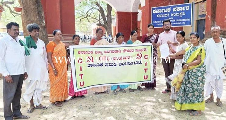 ಲಿಂಗಸಗೂರು : ಏ . 10 – 2011ರಿಂದ 2022 ರವರೆಗೆ ನಿವೃತ್ತಿ ಹೊಂದಿದ ಅಂಗನವಾಡಿ ಕಾರ್ಯಕರ್ತೆಯರ ಮತ್ತು ಸಹಾಯಕಿಯರ ಗ್ರಾಚುಟಿ ಹಣ ಬಿಡುಗಡೆ ಮಾಡಬೇಕೆಂದು ಒತ್ತಾಯಿಸಿ ಕರ್ನಾಟಕ ರಾಜ್ಯ ಅಂಗನವಾಡಿ ನೌಕರರ ಸಂಘದ (ಸಿಐಟಿಯು ಸಂಯೋಜಿತ) ನೌಕರರು ಸಹಾಯಕ ಆಯುಕ್ತರಿಗೆ ಮನವಿ ಸಲ್ಲಿಸಿದರು.