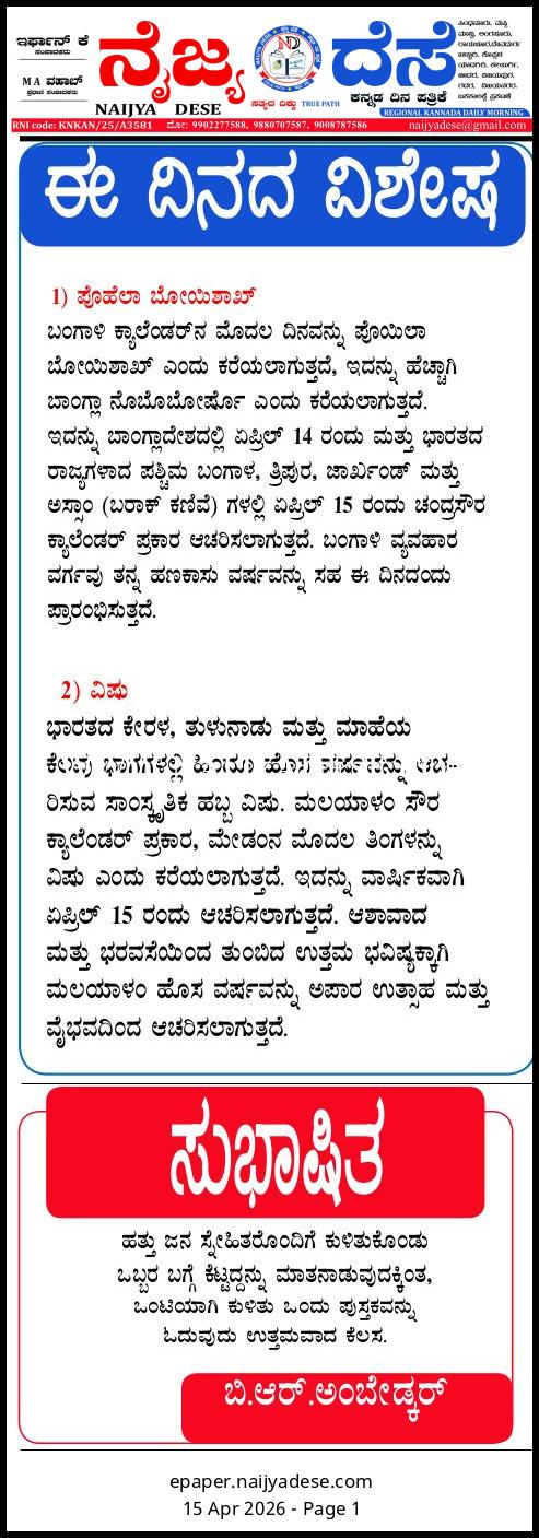 ಈ ದಿನದ ವಿಶೇಷ