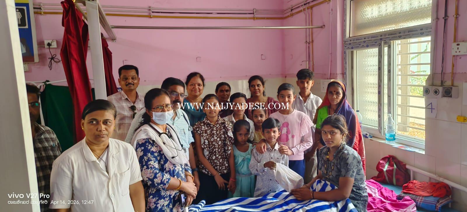 ಪಟ್ಟಣದ ಸಮೂದಾಯ ಆರೋಗ್ಯ ಕೇಂದ್ರದಲ್ಲಿನ ಬಡ ರೋಗಿಗಳಿಗೆ ಬ್ರೇಡ್, ಬೀಸ್ಕಿತ್, ಹಣ್ಣು ಹಂಪಲುಗಳನ್ನು ವಿತರಿಸಿದ ಹಣಮಂತ ನಲವಡೆ ಕುಟುಂಭದವರು ರೋಗಿಗಳೊಂದಿಗೆ ಕುಷಲೋಪಚಾರವನ್ನು ಗೈದರು.