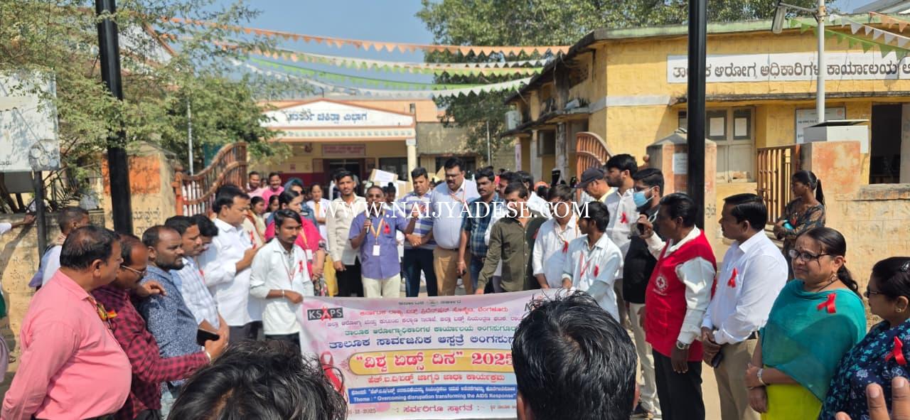 ಲಿಂಗಸಗೂರು : ಜಿಲ್ಲಾ ಆರೋಗ್ಯ ಕುಟುಂಬ ಕಲ್ಯಾಣ ಇಲಾಖೆ ರಾಯಚೂರು, ಜಿಲ್ಲಾ ಏಡ್ಸ್ ತಡೆ ಮತ್ತು ನಿಯಂತ್ರಣ ಘಟಕ ರಾಯಚೂರು ತಾಲೂಕ್ ಆರೋಗ್ಯ ಅಧಿಕಾರಿಗಳು ಕಚೇರಿ ಲಿಂಗಸೂಗೂರ, ತಾಲೂಕು ಸಾರ್ವಜನಿಕ ಆಸ್ಪತ್ರೆ ಲಿಂಗಸುಗೂರು, ಶ್ರೀ ಅಲ್ಲಮಪ್ರಭು ಪ್ಯಾರಾಮೆಡಿಕಲ್ ಕಾಲೇಜ್ ಲಿಂಗಸಗೂರು & ಭಾರತೀಯ ರೆಡ್ ಕ್ರಾಸ್ ಸಂಸ್ಥೆ ಲಿಂಗಸೂಗುರು ಇವರುಗಳ ಸಂಯೋಗದೊಂದಿಗೆ ದಿನಾಂಕ 1.12.2025 ರಂದು ವಿಶ್ವ ಏಡ್ಸ್ ದಿನಾಚರಣೆಯನ್ನು ಬೆಳಿಗ್ಗೆ 10 ಗಂಟೆ ಗೆ ತಾಲೂಕು ಸಾರ್ವಜನಿಕ ಆಸ್ಪತ್ರೆ ಆವರಣದಲ್ಲಿ ಶ್ರೀ ಅಂಬರೀಶ್ ಪಾಟೀಲ್ ತಾಲೂಕು ಆರೋಗ್ಯ ಅಧಿಕಾರಿಗಳು.ತಜ್ನ ವೈದ್ಯರು ಚಾಲನೆ ನೀಡಿದರು