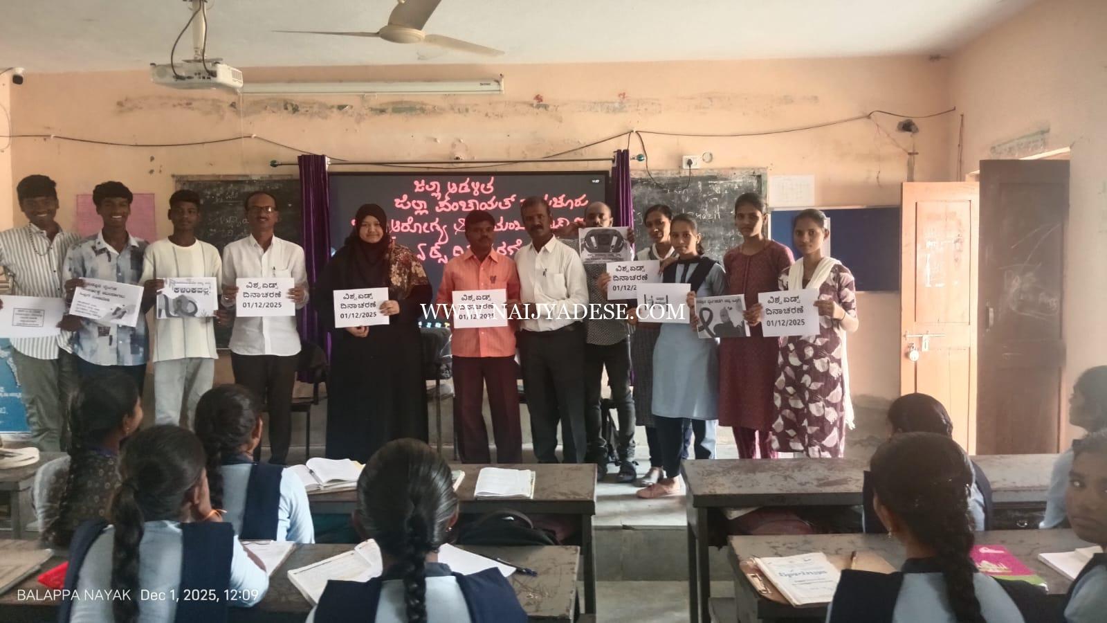 ಸಿಂಧನೂರು ಡಿಸೆಂಬರ್ ೦1: ಜಿಲ್ಲಾಡಳಿತ ಜಿಲ್ಲಾ ಪಂಚಾಯತ ಜಿಲ್ಲಾ ಆರೋಗ್ಯ ಮತ್ತು ಕುಟುಂಬ ಕಲ್ಯಾಣ ಇಲಾಖೆ.ಜಿಲ್ಲಾ ಏಡ್ಸ್ ನಿಯಂತ್ರಣ ಸೊಸೈಟಿ ರಾಯಚೂರು ಸರ್ಕಾರಿ ಪದವಿ ಪೂರ್ವ ಕಾಲೇಜ ಮತ್ತು ಪ್ರಾಥಮಿಕ ಆರೋಗ್ಯ ಕೇಂದ್ರ ಜವಳಗೇರಾ ಇವರ ಸಂಯುಕ್ತ ಆಶ್ರಯದಲ್ಲಿ ಜವಳಗೇರಾ ಸರ್ಕಾರಿ ಪದವಿ ಪೂರ್ವ ಕಾಲೇಜಿನಲ್ಲಿ ವಿಶ್ವ ಏಡ್ಸ್ ದಿನಾಚರಣೆ ಕಾರ್ಯಕ್ರಮ ಹಮ್ಮಿಕೊಳ್ಳಲಾಯಿತು