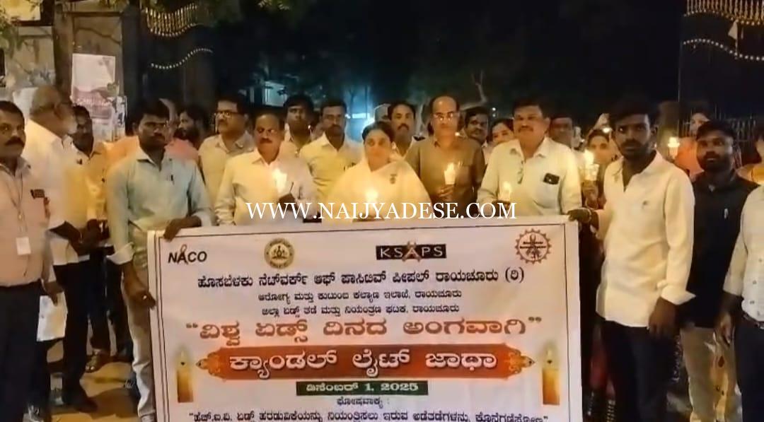 ಡಿಸೆಂಬರ್ 01ರ ಸೋಮವಾರ ಸಂಜೆ ನಗರದ ಆರೋಗ್ಯ ಮತ್ತು ಕುಟುಂಬ ಕಲ್ಯಾಣ ಇಲಾಖೆಯ ಆವರಣದಲ್ಲಿ ಜಿಲ್ಲಾಡಳಿತ, ಜಿಲ್ಲಾ ಪಂಚಾಯತ್, ಜಿಲ್ಲಾ ಆರೋಗ್ಯ ಮತ್ತು ಕುಟುಂಬ ಕಲ್ಯಾಣ ಇಲಾಖೆ, ರಿಮ್ಸ್ ನರ್ಸಿಂಗ್ ಕಾಲೇಜು, ಡ್ಯಾಪ್ಕೋ ಹಾಗೂ ಹೊಸಬೆಳಕು ಸಂಸ್ಥೆ ಸಹಯೋಗದಲ್ಲಿ ಹೆಚ್ಐವಿ ಜಾಗೃತಿಯ ಮೆಣದ ಬತ್ತಿಯೊಂದಿಗೆ ಜಾಗೃತಿ ನಡಿಗೆ ಚಾಲನೆ ನೀಡಿ ಅವರು ಮಾತನಾಡಿದರು.
