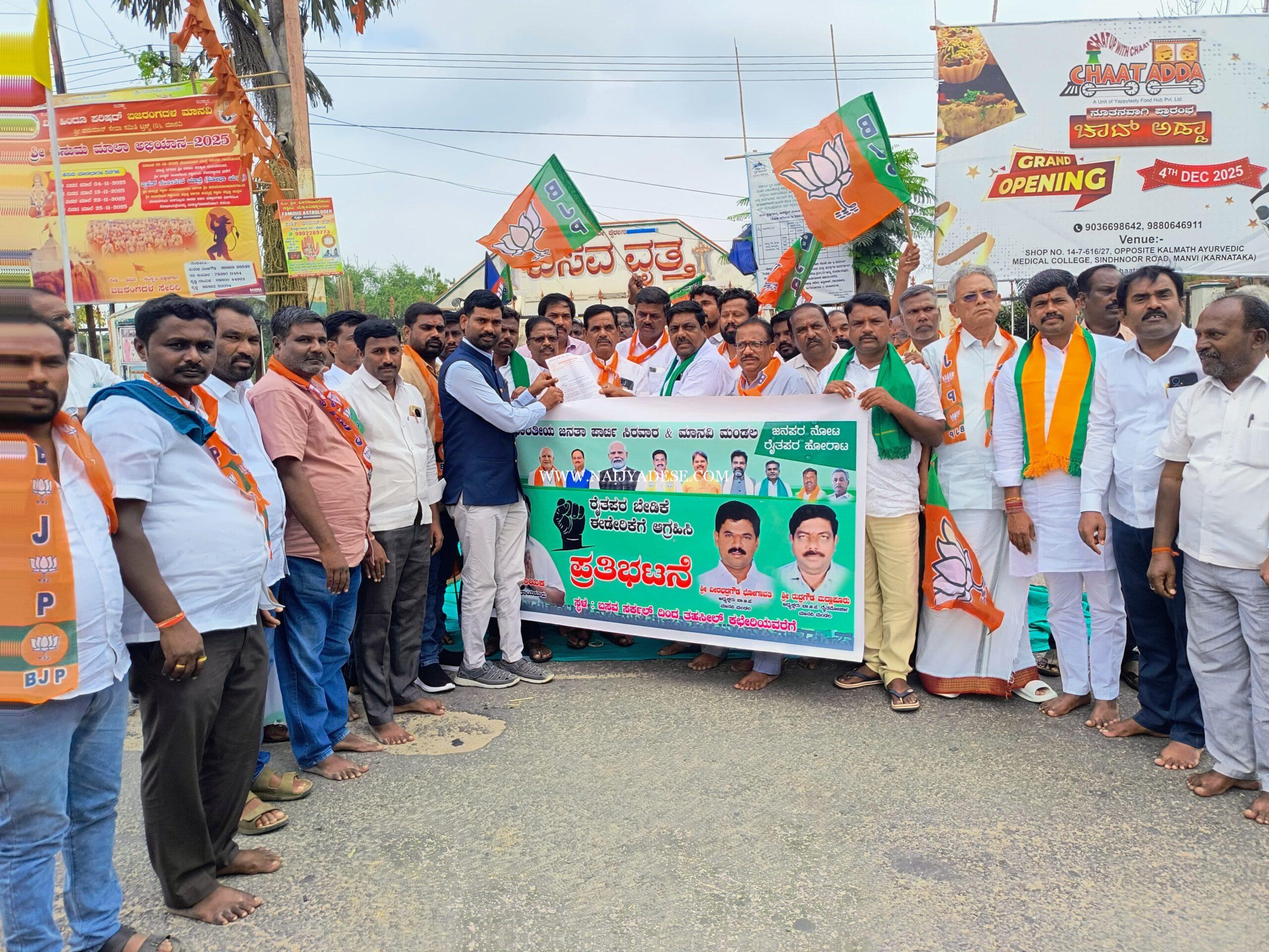 ಮಾನ್ವಿ : ಪಟ್ಟಣದ ಬಸವ ವೃತ್ತದಲ್ಲಿ ರೈತ ಸಂಘಗಳ ಸಂಯುಕ್ತ ವೇದಿಕೆ ವತಿಯಿಂದ ಭಾರಿ ಪ್ರತಿಭಟನೆ ನಡೆಯಿತು. ಸರ್ಕಾರ ಅಧಿಕಾರಕ್ಕೆ ಬಂದ ದಿನದಿಂದಲೇ ರೈತರು ಹೇಳತಿರದಷ್ಟು ಸಂಕಷ್ಟವನ್ನು ಎದುರಿಸುತ್ತಿದ್ದು, ಹಿಂದಿನ ಸರ್ಕಾರ ನೀಡುತ್ತಿದ್ದ ಸಹಾಯ–ಅನುದಾನಗಳನ್ನು ಹೊಸ ಸರ್ಕಾರ ಮುಂದುವರಿಸದಿರುವುದು ರೈತರ ಬದುಕಿನ ಮೇಲೆ ನೇರ ಹೊಡೆತವಾಗಿದೆ ಎಂದು ರೈತರು ಆಕ್ರೋಶ ವ್ಯಕ್ತಪಡಿಸಿದರು. ಗಣನೀಯ ಸಂಖ್ಯೆಯಲ್ಲಿ ಭಾಗವಹಿಸಿದ್ದ ರೈತರು ತಮ್ಮ ಬೇಡಿಕೆಗಳೊಂದಿಗೆ “ರೈತರಿಗೆ ನ್ಯಾಯ ಬೇಕು” ಎಂದು ಘೋಷಣೆ ಕೂಗಿದರು.