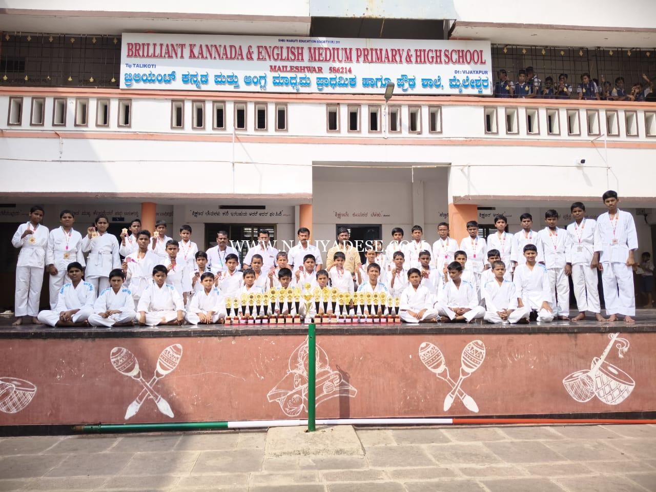 ತಾಳಿಕೋಟೆ : ಬಳ್ಳಾರಿಯಲ್ಲಿ ನಡೆದಿದ್ದ ಕರಾಟೆ ಚಾಂಪಿಯನ್ ಶಿಪ್ ನಲ್ಲಿ ಬ್ರಿಲಿಯಂಟ್ ಕನ್ನಡ ಮತ್ತು ಆಂಗ್ಲ ಮಾಧ್ಯಮ ಪ್ರಾಥಮಿಕ ಹಾಗೂ ಪ್ರೌಢ ಶಾಲೆ ಮೈಲೇಶ್ವರದ ವಿದ್ಯಾರ್ಥಿಗಳು ಭಾಗವಹಿಸಿ ಹಲವಾರು ಪದಕಗಳನ್ನು ತಮ್ಮ ತೆಕ್ಕೆಗೆ ಪಡೆದುಕೊಂಡರು. ಈ ಚಾಂಪಿಯನ್ ಶಿಪ್ ನಲ್ಲಿ ಭಾಗವಹಿಸಿ ವಿವಿಧ ವಿಭಾಗಗಳಲ್ಲಿ ಪದಕಗಳನ್ನು ಪಡೆದ ವಿದ್ಯಾರ್ಥಿಗಳಿಗೆ ಹಾಗೂ ಕರಾಟೆ ತರಬೇತುದಾರರಾದ ಶ್ರೀ ಲಕ್ಷ್ಮಣ ಪಿರಂಗಿ ಸರ್ ಅವರಿಗೆ ಶ್ರೀ ಮಾರುತಿ ಶಿಕ್ಷಣ ಸಂಸ್ಥೆಯ ಅಧ್ಯಕ್ಷರು, ಉಪಾಧ್ಯಕ್ಷರು, ಕಾರ್ಯದರ್ಶಿಗಳು ಹಾಗೂ ನಿರ್ದೇಶಕರು ಮತ್ತು ಬ್ರಿಲಿಯಂಟ್ ಶಾಲೆಯ ಮುಖ್ಯೋಪಾಧ್ಯಾಯರು ಹಾಗೂ ಸಮಸ್ತ ಸಿಬ್ಬಂದಿ ವರ್ಗದವರು ಅಭಿನಂದಿಸಿ ಹರ್ಷ ವ್ಯಕ್ತಪಡಿಸಿದ್ದಾರೆ.