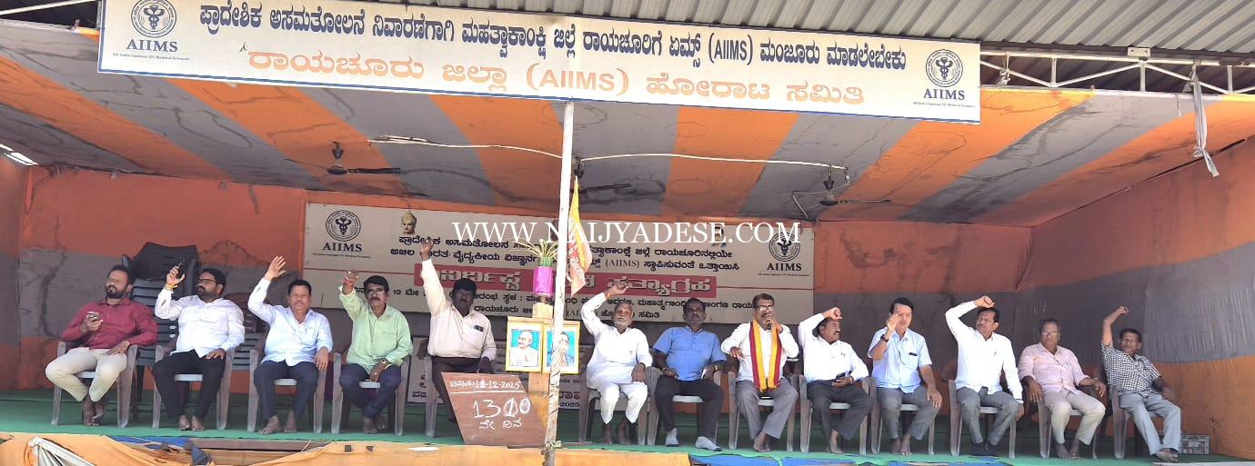 ಕರ್ನಾಟಕ ರಾಜ್ಯ ಸರ್ಕಾರದ ಮಹತ್ವದ ಶಿಫಾರಸ್ಸು ಪತ್ರಗಳಿಗೆ ಗೌರವ ನೀಡಿ, ಸುಧೀರ್ಘವಾಗಿ ನಡೆಯುತ್ತಿರುವ ಅನಿರ್ದಿಷ್ಟ ಧರಣಿ ಸತ್ಯಾಗ್ರಹಕ್ಕೆ ಸ್ಪಂದಿಸಿ ಶೀಘ್ರದಲ್ಲಿಯೇ ರಾಯಚೂರಿಗೆ ಏಮ್ಸ್ ಆರೋಗ್ಯ ಸಂಸ್ಥೆಯನ್ನು ಮಂಜೂರು ಮಾಡಲೇಬೇಕೆಂದು ಕೇಂದ್ರ ಸರಕಾರವನ್ನು ಒತ್ತಾಯಿಸುತ್ತಾ ನಡೆಸುತ್ತಿರುವ ಎಮ್ಸ್ ಹೋರಾಟ ಸಮಿತಿ