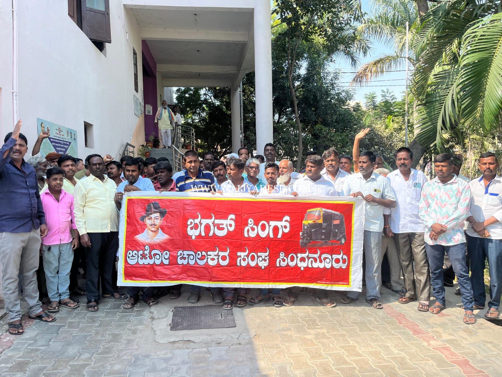 ಸಿಂಧನೂರು,ನಗರದ ವಿವಿಧ ಕಡೆ ಆಟೋ ಸ್ಟ್ಯಾಂಡ್ಗಳಿಗೆ ಅನುಕೂಲ ಕಲ್ಪಿಸಿ, ಸಾರ್ವಜನಿಕರಿಗೆ ಸಾರಿಗೆ ಸೇವೆ ಒದಗಿಸಲು ಸೂಕ್ತ ಕ್ರಮ ಜರುಗಿಸುವಂತೆ ಒತ್ತಾಯಿಸಿ ಭಗತ್ಸಿಂಗ್ ಆಟೋ ಚಾಲಕರ ಸಂಘ ತಾಲೂಕು ಸಮಿತಿ ವತಿಯಿಂದ ನಗರಸಭೆ ಪೌರಾಯುಕ್ತರಿಗೆ ಗುರುವಾರ ಮನವಿ ಸಲ್ಲಿಸಲಾಯಿತು.