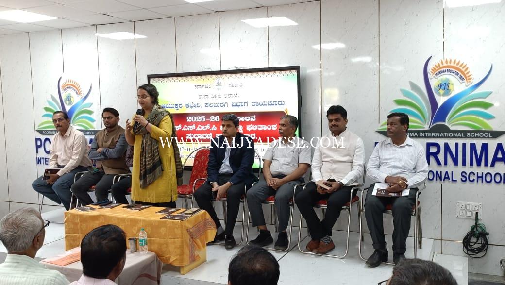 ರಾಯಚೂರಿನ ಜಿಲ್ಲಾಧಿಕಾರಿಗಳಾದ ನಿತೀಶ್ ಕೆ ಅವರು ಮಾತನಾಡಿ, ಈ ಬಾರಿ ರಾಯಚೂರು ಜಿಲ್ಲೆಯ ಎಸ್.ಎಸ್.ಎಲ್.ಸಿ ಫಲಿತಾಂಶವು ಕಳೆದ ಬಾರಿಗಿಂತ ಉತ್ತಮಪಡಿಸಬೇಕು. ಜೊತೆಗೆ ಇಲಾಖೆಯು ನೀಡಿದ ಎಲ್ಲಾ ಅಂಶಗಳನ್ನು ಶಾಲಾ ಹಂತದಲ್ಲಿ ಅನುಷ್ಠಾನಗೊಳಿಸಬೇಕು. ಕ್ರಿಯಾಯೋಜನೆಯಂತೆ ಕಾರ್ಯ ನಿರ್ವಹಿಸಬೇಕು. ಕಲಿಕೆಯಲ್ಲಿ ಹಿಂದುಳಿದ ವಿದ್ಯಾರ್ಥಿಗಳನ್ನು ಗುರುತಿಸಿ ಅವರಲ್ಲಿ ಆತ್ಮವಿಶ್ವಾಸ ತುಂಬುವ ಕೆಲಸ ಮಾಡಬೇಕು. ಪಾಲಕ ಪೋಷಕರ ಸಭೆ ಮಾಡಿ ಅವರೊಂದಿಗೆ ಚರ್ಚಿಸಿ ಶಾಲೆಯಿಂದ ಹೊರಗುಳಿದ ಮಕ್ಕಳನ್ನು ಪುನಃ ಶಾಲೆಗೆ ಕರೆತರಬೇಕು ಎಂದು ಸೂಚನೆ ನೀಡಿದರು.