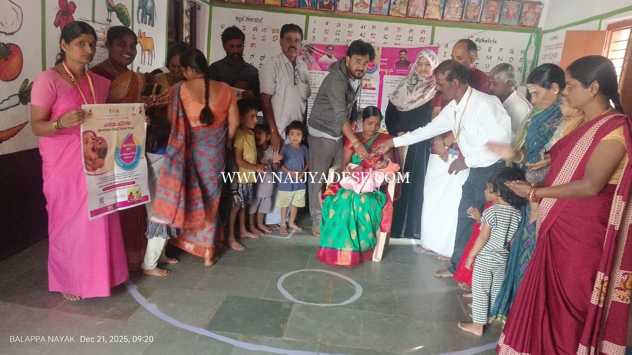 ಸಿಂಧನೂರು ಡಿಸೆಂಬರ್ 21: ಸಮೀಪದ ಜವಳಗೇರಾ ಪ್ರಾಥಮಿಕ ಆರೋಗ್ಯ ಕೇಂದ್ರದಿಂದ ಅಂಗನವಾಡಿ ಕೇಂದ್ರ 3ನೇ ಕೇಂದ್ರದಲ್ಲಿ ಚಂದ್ರು ಭೂಪಾಲ್ ನಾಡಗೌಡರು ಮಕ್ಕಳಿಗೆ ಪೋಲಿ ಹನಿ ಹಾಕುವುದರ ಮೂಲಕ ಪಲ್ಸ್ ಪೋಲಿಯೋ ಕಾರ್ಯಕ್ರಮಕ್ಕೆ ಚಾಲನೆ ನೀಡಿದರು.