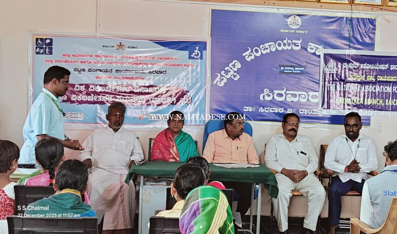 ಸಿರವಾರ : ಪಟ್ಟಣದ ಪಟ್ಟಣ ಪಂಚಾಯಿತಿ ಕಾರ್ಯಾಲಯದಲ್ಲಿ ಜಿಲ್ಲಾಧಿಕಾರಿಗಳ ಕಾರ್ಯಾಲಯ – ನಗರಾಭಿವೃದ್ಧಿ ಕೋಶ, ರಾಯಚೂರು, ಜಿಲ್ಲಾ ವಿಕಲಚೇತನರ ಹಾಗೂ ಹಿರಿಯ ನಾಗರೀಕರ ಸಬಲೀಕರಣ ಇಲಾಖೆ, ರಾಯಚೂರು ಹಾಗೂ ಪಟ್ಟಣ ಪಂಚಾಯತ್ ಕಾರ್ಯಾಲಯ, ಸಿರವಾರ ಇವರ ಸಂಯುಕ್ತಾಶ್ರಯದಲ್ಲಿ ವಿಶ್ವ ವಿಕಲಚೇತನರ ದಿನಾಚರಣೆ ಹಾಗೂ ವಿಕಲಚೇತನರ ಸಮನ್ವಯ (ವಾರ್ಡ್) ಸಭೆ ಯಶಸ್ವಿಯಾಗಿ ನಡೆಯಿತು.