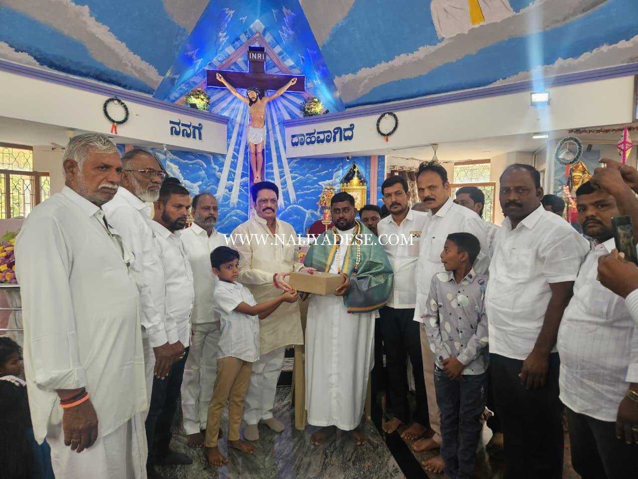 ಮಾನ್ವಿ : ಪಟ್ಟಣದ ಕೋನಾಪುರ ಪೇಟೆಯಲ್ಲಿನ ಸೇಂಟ್ ಮೇರಿಸ್ ಚರ್ಚ್ನಲ್ಲಿ ಕ್ರಿಸ್ಮಸ್ ಹಬ್ಬದ ಅಂಗವಾಗಿ ಆಯೋಜಿಸಲಾದ ಕಾರ್ಯಕ್ರಮದಲ್ಲಿ ಭಾಗವಹಿಸಿ ಸೇಂಟ್ ಮೇರಿಸ್ ಚರ್ಚ್ನ ಫಾ. ಸುರೇಶ್ ವಿನ್ಸೆಂಟ್ ಹಾಗೂ ಫಾದರ್ ವಸಂತ್ ರವರಿಗೆ ಮಾಜಿ ಶಾಸಕ ರಾಜಾ ವೆಂಕಟಪ್ಪ ನಾಯಕ ಕ್ರಿಸ್ಮಸ್ ಹಬ್ಬದ ಶುಭಾಶಯವನ್ನು ಕೋರಿ ಮಾತನಾಡಿ ಕ್ರಿಸ್ಮಸ್ ಹಬ್ಬವು ಶಾಂತಿ, ಪ್ರೀತಿ ಹಾಗೂ ಮಾನವೀಯ ಮೌಲ್ಯಗಳನ್ನು ಸಾರುವ ಮಹತ್ವದ ಹಬ್ಬವಾಗಿದ್ದು, ಎಲ್ಲ ಧರ್ಮಗಳ ನಡುವೆ ಸೌಹಾರ್ದತೆ ಮತ್ತು ಸಹಬಾಳ್ವೆಯನ್ನು ಬಲಪಡಿಸುತ್ತದೆ ಎಂದು ತಿಳಿಸಿದರು.