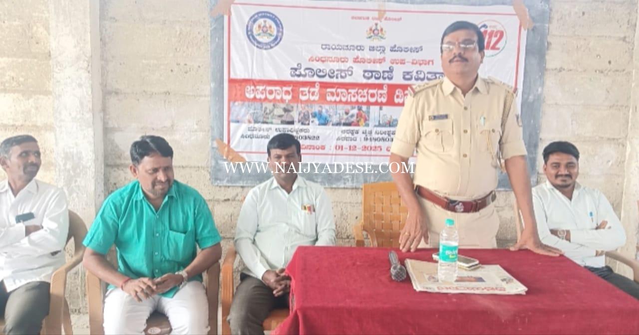 ಮಸ್ಕಿ ತಾಲೂಕಿನ ಹಾಲಾಪೂರದ ಜನನಿ ಪದವಿ ಪೂರ್ವ ಕಾಲೇಜಿನಲ್ಲಿ ಕವಿತಾಳ ಪೊಲೀಸ್ ಠಾಣೆ ವತಿಯಿಂದ ಅಪರಾಧ ತಡೆ ಮಾಸಾಚರಣೆ ಕಾರ್ಯಕ್ರಮ ನಡೆಯಿತು. ಕಾರ್ಯಕ್ರಮದ ಕುರಿತು ಪಿಎಸ್ಐ ಗುರುಚಂದ್ರ ಯಾದವ್ ಮಾತಾಡುತ್ತಾ ಪ್ರತಿಯೊಬ್ಬರು ಕಾನೂನು ಪಾಲಿಸಬೇಕು, ಕಾನೂನು ನಮ್ಮೆಲ್ಲರಿಗೂ ಅವಶ್ಯಕ. ವಿದ್ಯಾರ್ಥಿಗಳು ನೀವು ವಿಶೇಷವಾಗಿ ಯಾವುದೇ ಕೆಟ್ಟ ಚಟಗಳಿಗೆ ಬಲಿಯಾಗದೆ ಅಭ್ಯಾಸ ಕಡೆ ಗಮನ ಕೊಡಿ ಹಾಗೇ ವಿದ್ಯಾರ್ಥಿನಿಯರು ಬಾಲ್ಯ ವಿವಾಹ ತಡೆಗಟ್ಟವಲ್ಲಿ ನಿಮ್ಮ ಪಾತ್ರ ದೊಡ್ಡದು ಸಹಕರಿಸಬೇಕು, ಇಂದು ನಿಮಗಾಗಿ ಸರ್ಕಾರ ಅನೇಕ ಕಾನೂನಗಳನ್ನು ರೂಪಿಸಿದ್ದು ಸರಿಯಾಗಿ ಸದ್ಬಳಿಕೆ ಮಾಡಿಕೊಂಡು ಸಮಾಜದಲ್ಲಿ ಉನ್ನತ ಹುದ್ದೆ ಹೊಂದಿ ಆದರ್ಶ ಪುರುಷರಾಗಿ ಬದುಕಬೇಕೆಂದು ಪಿಎಸ್ಐ ಗುರುಚಂದ್ರ ಯಾದವ್ ಹೇಳಿದರು. ಈ ಸಂದರ್ಭದಲ್ಲಿ ಉಪನ್ಯಾಸಕರಾದ ಸಿದ್ದಾರ್ಥ್ ಪೂ.ಪಾ , ಮರಿಸ್ವಾಮಿ, ವೀರೇಶ ಜೆ, ರಾಮಣ್ಣ ನಾಯಕ್, ದುರ್ಗೇಶ್, ಮಲ್ಲಿಕಾರ್ಜುನ ಪೊಲೀಸ್ ಇದ್ದರು.