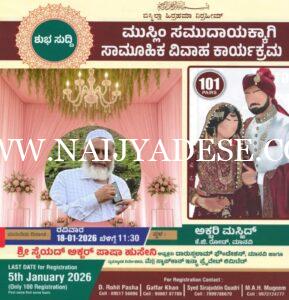 ಮಾನ್ವಿ : ಮಾನ್ವಿ ಪಟ್ಟಣದ ಪ್ರಥಮ ದರ್ಜೆ ಗುತ್ತೇದಾರರು ಕಲ್ಲು ಗಣಿಗಾರಿಕೆಯ ಮಾಲೀಕರು, ದಾರುಸ್ಸಲಾಮ್ ಸಹಕಾರಿ (ಬಡ್ಡಿ ರಹಿತ) ಬ್ಯಾಂಕಿನ ಅಧ್ಯಕ್ಷರು, ಸಮಾಜ ಸೇವಕರಾದ ಸೈಯದ್ ಅಕ್ಬರ್ ಪಾಶ ಇವರು ತಮ್ಮ ಹಿರಿಯ ಸುಪುತ್ರನ ವಲಿಮಾ ಸಮಾರಂಭದಲ್ಲಿ 101 ಮುಸ್ಲಿಂ ಸಾಮೂಹಿಕ ವಿವಾಹಗಳನ್ನು ಏರ್ಪಡಿಸಿದ್ದಾರೆ, ನಗರದಲ್ಲಿ ಉಚಿತ ಮುಸ್ಲಿಂ ಸಾಮೂಹಿಕ ವಿವಾಹ ಕಾರ್ಯಕ್ರಮ. ಜನೆವರಿ 18 ರಂದು, ಅಕ್ಬರಿ ಮಸೀದಿ ಮಾನ್ವಿ ಆವರಣದಲ್ಲಿ , ಏರ್ಪಡಿಸಲಾಗಿದ್ದು . ಈ ಸಾಮೂಹಿಕ ವಿವಾಹ ಕಾರ್ಯಕ್ರದಲ್ಲಿ ವಿವಾಹ ಮಾಡಿಕೊಳ್ಳಲು ಅಥವಾ ಪಾಲುಗೊಳ್ಳುಲು ಆಸಕ್ತಿ ಉಳ್ಳವರು ಜನೆವರಿ 05 ಕೊನೆಯ ದಿನವಾಗಿದೆ, ನೋಂದಣಿ ಮಾಡಿಕೊಳ್ಳಲು ಅವಕಾಶವಿದೆ. ಈ ಸಮಾಜಮುಖಿಯ ಉತ್ತಮ ಕಾರ್ಯಕ್ರಮವನ್ನು ಎಲ್ಲರೂ ಬೆಂಬಲಿಸಿ ಯಶಸ್ವಿಯಾಗಲು ಸಹಕರಿಸಬೇಕು,