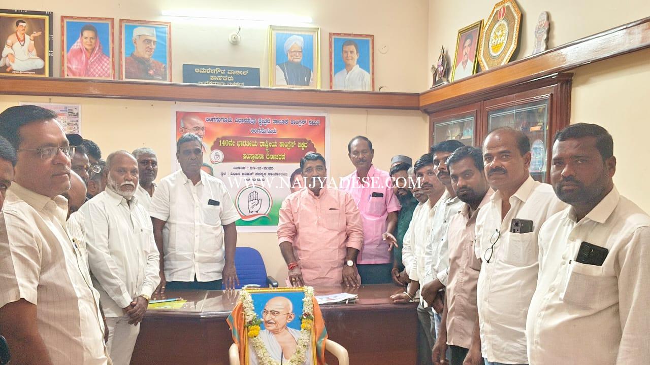 ಭಾರತೀಯ ರಾಷ್ಟ್ರೀಯ ಕಾಂಗ್ರೆಸ್ ಪಕ್ಷದ 140ನೇ ಸಂಸ್ಥಾಪನಾ ದಿನಾಚರಣೆಯನ್ನು ಪಟ್ಟಣದ ಕಾಂಗ್ರೆಸ್ ಕಚೇರಿಯಲ್ಲಿ ಆಚರಿಸಲಾಯಿತು. ಕಾರ್ಯಕ್ರಮದಲ್ಲಿ ವಿಧಾನಪರಿಷತ್ ಸದಸ್ಯರಾದ ಶರಣಗೌಡ ಪಾಟೀಲ್ ಬಯ್ಯಾಪುರ್ ರವರು ನೇತೃತ್ವ ವಹಿಸಿದರು . ರಾಷ್ಟ್ರಪಿತ ಮಹಾತ್ಮಾ ಗಾಂಧೀಜಿಯವರ ಭಾವಚಿತ್ರಕ್ಕೆ ಪುಷ್ಪನಮನ ಸಲ್ಲಿಸಿ ಮಾತನಾಡಿದ ಅವರು ದೇಶಕ್ಕೆ ಸ್ವಾತಂತ್ರ್ಯ ತಂದುಕೊಟ್ಟು, ರಾಷ್ಟ್ರದ ಏಕತೆ, ಅಖಂಡತೆ ಹಾಗೂ ಸರ್ವತೋಮುಖ ಅಭಿವೃದ್ಧಿಗೆ ಶ್ರಮಿಸಿದ ಕಾಂಗ್ರೆಸ್ ಪಕ್ಷದ ಎಲ್ಲಾ ಹಿರಿಯ ನಾಯಕರು ಮತ್ತು ಮಹಾನ್ ತ್ಯಾಗಿಗಳನ್ನು ಈ ಸಂದರ್ಭದಲ್ಲಿ ಸ್ಮರಿಸಿ ಕಾಂಗ್ರೆಸ್ ಪಕ್ಷವು ದೇಶದ ಪ್ರಜಾಪ್ರಭುತ್ವದ ರಕ್ಷಣೆಗೆ ಹಾಗೂ ಸಾಮಾಜಿಕ ನ್ಯಾಯದ ಅನುಷ್ಠಾನಕ್ಕೆ ನೀಡಿರುವ ಕೊಡುಗೆಗಳನ್ನು ಸ್ಮರಿಸಿದರು.