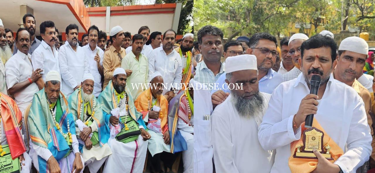 ಸಿಂಧನೂರು : ಉಮ್ರಾ ಯಾತ್ರೆ ಕೈಗೊಂಡ ತಾಲ್ಲೂಕಿನ ೭೦ ಯಾತ್ರಾರ್ಥಿಗಳಿಗೆ ಸೋಮವಾರ ನಗರಾಭಿವೃದ್ಧಿ ಪ್ರಾಧಿಕಾರದ ಅಧ್ಯಕ್ಷ ಬಾಬುಗೌಡ ಬಾದರ್ಲಿ ನೇತೃತ್ವದಲ್ಲಿ ಕಾಂಗ್ರೆಸ್ ಮುಖಂಡರು ಸನ್ಮಾನಿಸಿ ಬೀಳ್ಕೊಟ್ಟರು.