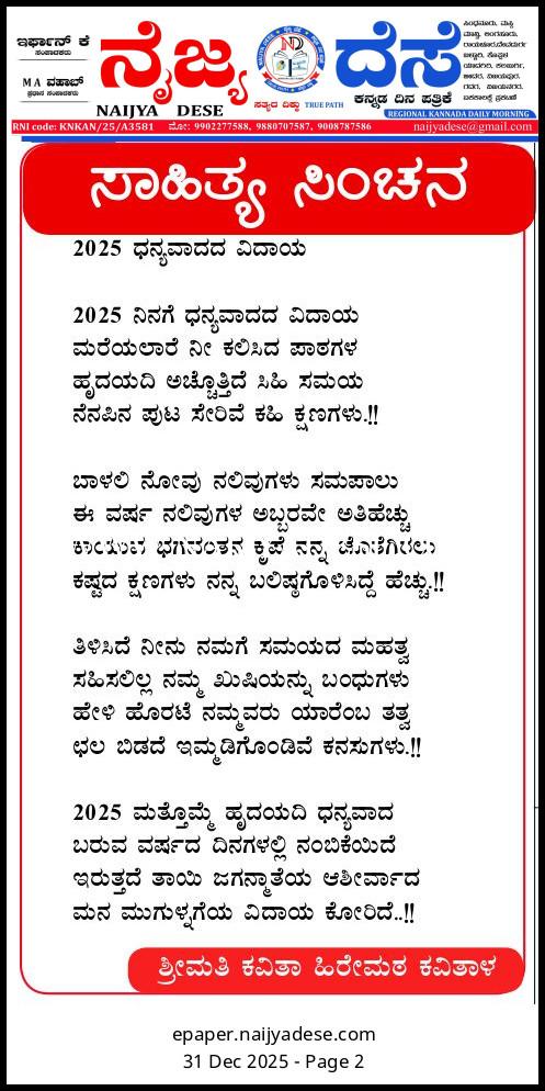 ಸಾಹಿತ್ಯ ಸಿಂಚನ Facebook Twitter LinkedIn WhatsApp Email Telegram Threads Post navigation ತಾಲ್ಲೂಕು ಸಾರ್ವಜನಿಕ ಆಸ್ಪತ್ರೆಗೆ ಸಿ ಟಿ ಸ್ಕ್ಯಾನ್, ಎಮ್ ಆರ್ ಐ ಮತ್ತು ಡಯಲಿಸಸ್ ಸ್ಥಾಪಿಸಲು ವಿಧಾನಪರಿಷತ್ ಸದಸ್ಯ ಬಸನಗೌಡ ಬಾದರ್ಲಿ ಮನವಿ ವಿಶೇಷ ಲೋಕ ಅದಾಲತ್ ಜನವರಿ 24ಕ್ಕೆ