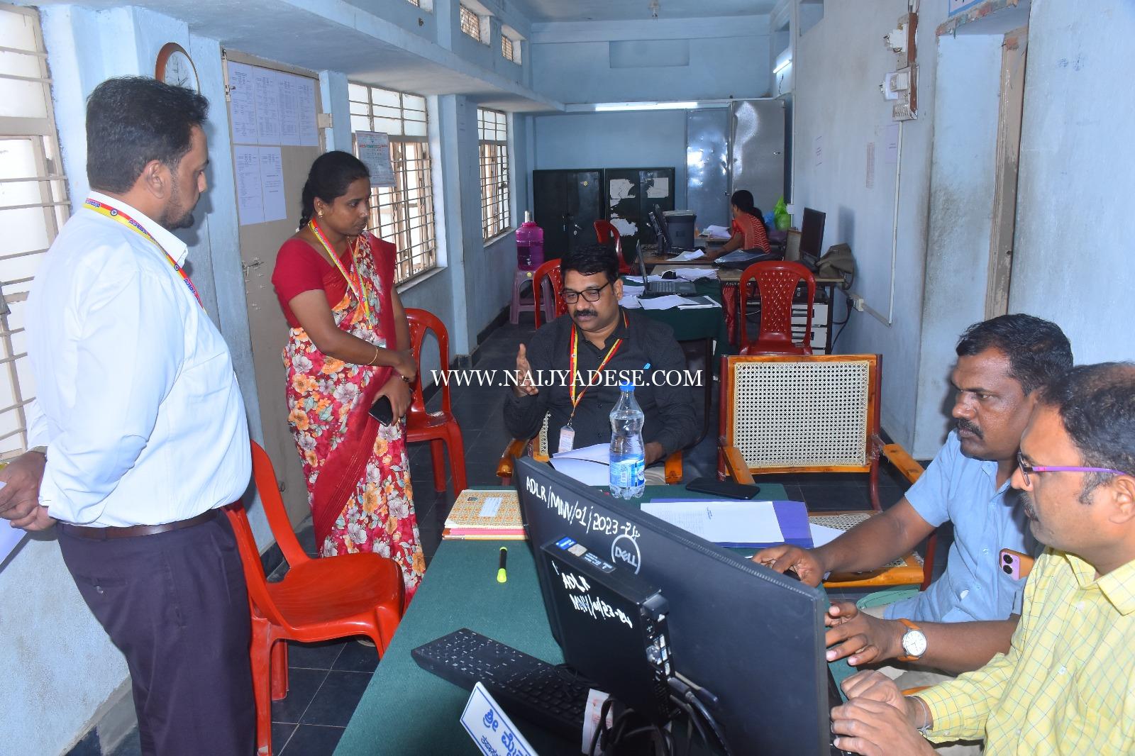ಭೂದಾಖಲೆಗಳ ಸಹಾಯಕ ನಿರ್ದೇಶಕ ಮಹಮ್ಮದ್ ನೂರುದಿನ್ನ್ ರವರಿಂದ ಅಗತ್ಯ ದಾಖಲೆಗಳನ್ನು ಪಡೆದು ಪರಿಶೀಲಿಸಿ ರೈತರಿಂದ ಜಮೀನು ಆಳತೆ ಸೇರಿದಂತೆ ವಿವಿಧ ಖಾತೆಗಳಿಗೆ ಸಂಬAದಿಸಿದAತೆ ಬಂದಿರುವ ಅರ್ಜಿಗಳು ಬಾಕಿ ಇರುವ ಅರ್ಜಿಗಳು, ತಾಂತ್ರಿಕ ತೊಂದರೆಗಳು,ಭೂಮಾಪಕರ ಹಾಗೂ ಸಿಬ್ಬಂದಿಗಳ ಕೊರತೆ,ಸಮಸ್ಯೆಗಳ ಬಗ್ಗೆ ಮಾಹಿತಿ ಪಡೆದು ಲೋಪಗಳು ಕಂಡು ಬಂದಲ್ಲಿ ನೋಟಿಸ್ ನೀಡಲಾಗುವುದು ಹಾಗೂ ಉನ್ನತ ಅಧಿಕಾರಿಗಳಿಗೆ ವರದಿ ನೀಡಲಾಗುವುದು ಎಂದು ತಿಳಿಸಿದರು.