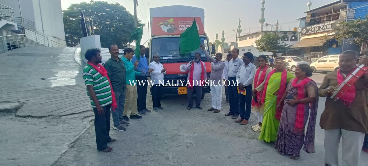 ನಗರದ ಜಿಲ್ಲಾ ಪಂಚಾಯತ್ ಕಚೇರಿ ಆವರಣದಲ್ಲಿ ನಡೆದ ಕಾರ್ಯಕ್ರಮದಲ್ಲಿ ಗ್ಯಾರಂಟಿ ಯೋಜನೆಗಳ ಅನುಷ್ಠಾನದ ಜಿಲ್ಲಾಮಟ್ಟದ ಸಮಿತಿಯ ಉಪಾಧ್ಯಕ್ಷರಾದ ನಾಗೇಂದ್ರ ಮಟಮಾರಿ, ಹನುಮಂತಪ್ಪ ಜಾಲಿಬೆಂಚಿ ಹಾಗೂ ತಾಲೂಕುಮಟ್ಟದ ಸಮಿತಿಯ ಅಧ್ಯಕ್ಷರಾದ ಪವನ್ ಕಿಶೋರ್ ಪಾಟೀಲ ಅವರು ಹಸಿರು ನಿಶಾನೆ ತೋರುವ ಮೂಲಕ ಕಲಾ ಜಾಥಾ ಕಾರ್ಯಕ್ರಮಕ್ಕೆ ಚಾಲನೆ ನೀಡಿದರು.