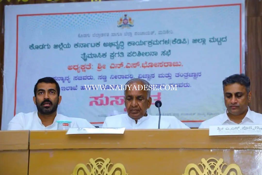 ಕೊಡಗು ಜಿಲ್ಲಾ ಪಂಚಾಯತ್ ಸಭಾಂಗಣದಲ್ಲಿ, ವಿರಾಜಪೇಟೆ ವಿಧಾನಸಭಾ ಕ್ಷೇತ್ರದ ಮಾನ್ಯ ಶಾಸಕರು ಹಾಗೂ ಸನ್ಮಾನ್ಯ ಮುಖ್ಯಮಂತ್ರಿಗಳ ಕಾನೂನು ಸಲಹೆಗಾರರಾದ ಶ್ರೀ ಪೊನ್ನಣ್ಣ ಹಾಗೂ ಮಡಿಕೇರಿ ವಿಧಾನಸಭಾ ಕ್ಷೇತ್ರದ ಶಾಸಕರಾದ ಶ್ರೀ ಡಾ. ಮಂತರ್ ಗೌಡ ಅವರ ಉಪಸ್ಥಿತಿಯಲ್ಲಿ 2025-26ನೇ ಸಾಲಿನ ಕೊಡಗು ಜಿಲ್ಲೆಯ ಕೆಡಿಪಿ ತ್ರೈಮಾಸಿಕ ಪ್ರಗತಿ ಪರಿಶೀಲನಾ ಸಭೆ ನಡೆಸಲಾಯಿತು.