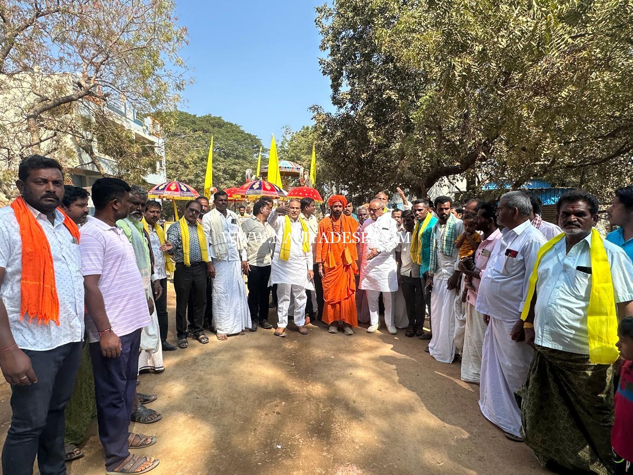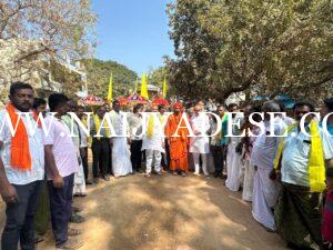 ನಾರಾಯಣಗುರು ಪ್ರತಿಮೆ ಹೊತ್ತ ಸಾರೋಟದೊಂದಿಗೆ ಪ್ರಣವಾನಂದ ಸ್ವಾಮೀಜಿ ಹಾಗೂ ಈಡಿಗ ಸಮಾಜದ ಬಂಧುಗಳೊಂದಿಗೆ ಕಾಂಗ್ರೆಸ್, ಜೆಡಿಎಸ್, ಬಿಜೆಪಿ ಪಕ್ಷದ ಮುಖಂಡರು ಪಾದಯಾತ್ರೆ ಉದ್ದಕ್ಕೂ ಹೆಜ್ಜೆಹಾಕಿ ಬೆಂಬಲ ನೀಡಿದರು.