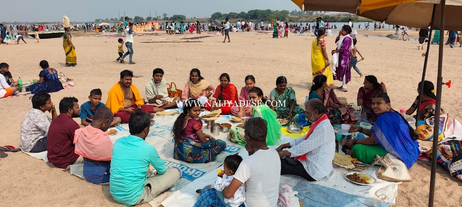 ನದಿತೀರದ ಮರಳು ಪ್ರದೇಶಗಳಲ್ಲಿ ಕುಟುಂಬಗಳು ಪಂಗಡವಾಗಿ ಕುಳಿತು ಊಟೋಪಚಾರ ನಡೆಸಿದರೆ, ಮಹಿಳೆಯರು ಹಾಗೂ ಮಕ್ಕಳು ಪರಸ್ಪರ ಹಬ್ಬದ ಶುಭಾಶಯಗಳನ್ನು ವಿನಿಮಯ ಮಾಡಿಕೊಂಡರು. ಕೆಲವರು ತಾತ್ಕಾಲಿಕ ಗುಡಾರಗಳನ್ನು ಹಾಕಿಕೊಂಡು ದಿನವಿಡೀ ವಿಶ್ರಾಂತಿ ಹಾಗೂ ಸಂಭ್ರಮದಲ್ಲಿ ತೊಡಗಿದರು.