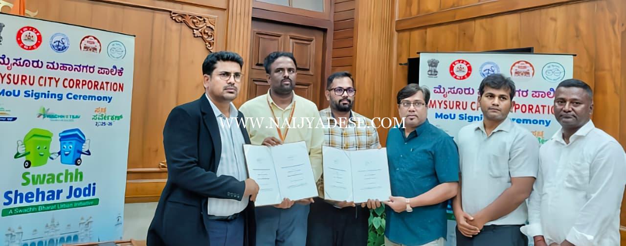ಮೈಸೂರು, ದಿನಾಂಕ: 20 ನವೆಂಬರ್, 2025 ರಂದು, ಆವಾಸ್ ಮತ್ತು ನಗರ ವ್ಯವಹಾರ ಮಂತ್ರಾಲಯ (MoHUA) ಮತ್ತು ಕರ್ನಾಟಕ ಸರ್ಕಾರದ ಮಾರ್ಗದರ್ಶನದಲ್ಲಿ, ಮೈಸೂರು ಮಹಾನಗರ ಪಾಲಿಕೆ (MCC) ಮತ್ತು ರಾಯಚೂರು ಮಹಾನಗರ ಪಾಲಿಕೆ (RMC) ನಡುವೆ ‘ಸ್ವಚ್ಛ ಶಹರ್ ಜೋಡಿ’ ಒಡಂಬಡಿಕೆಯ ಒಪ್ಪಂದಕ್ಕೆ ಸಹಿ ಹಾಕಲಾಯಿತು.