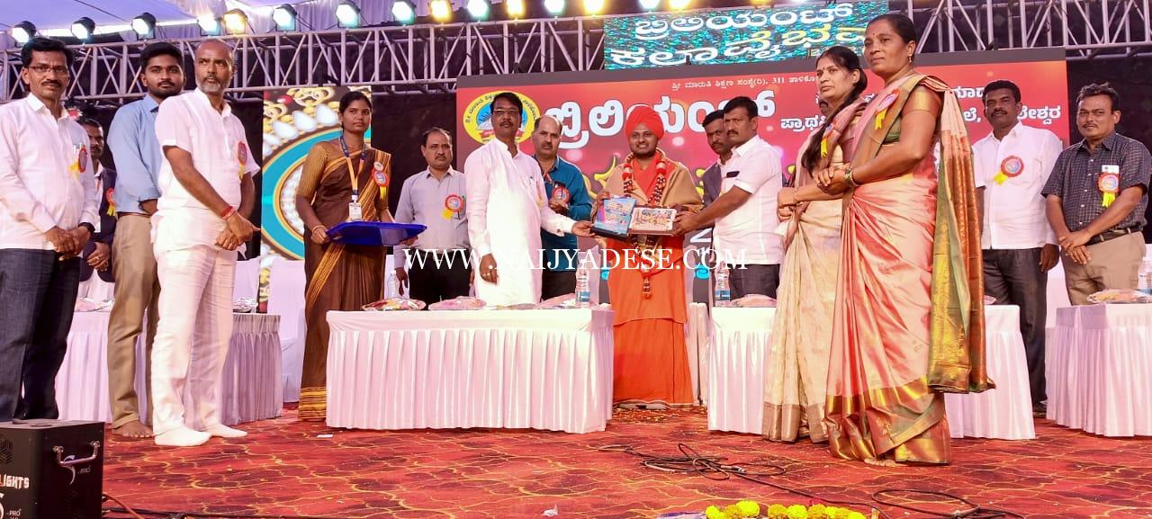 ತಾಳಿಕೋಟಿ : ತಾಲೂಕಿನ ಮೈಲೇಶ್ವರದ ಬ್ರಿಲಿಯಂಟ್ ಕನ್ನಡ ಮತ್ತು ಆಂಗ್ಲ ಮಾಧ್ಯಮ ಪ್ರಾಥಮಿಕ ಮತ್ತು ಪ್ರೌಢಶಾಲೆಯ ಕಲಾ ವೈಭವ ಸಮಾರಂಭದ ಸಾನ್ನಿಧ್ಯ ವಹಿಸಿದ್ದ ಕೋಲಾರ ಪಟ್ಟದೇವರು ಹಿರೇಮಠದ ಪರಮ ಪೂಜ್ಯ ಶೀ ಪ್ರಭುಕುಮಾರ ಶಿವಾಚಾರ್ಯ ಮಹಾಸ್ವಾಮಿಗಳಿಗೆ ಗೌರವ ಸಮರ್ಪಣೆ ಸಲ್ಲಿಸಲಾಯಿತು. ಸಂಸ್ಥೆಯ ಅಧ್ಯಕ್ಷ ಎನ್.ಬಿ.ನಡುವಿನಮನಿ,ಬಿಇಓ ಬಿ.ಎಸ್.ಸಾವಳಗಿ, ಕ್ಷೇತ್ರ ಸಮನ್ವಯಾಧಿಕಾರಿ ಆರ್ ಬಿ ದಮ್ಮೂರಮಠ,ಇಸಿಓ ಸುರೇಶ ಹಿರೇಮಠ ಹಾಗೂ ಸರ್ವಜ್ಞ ವಿದ್ಯಾಪೀಠದ ಅಧ್ಯಕ್ಷ ಸಿದ್ದನಗೌಡ ಮಂಗಳೂರ ಇದ್ದರು.