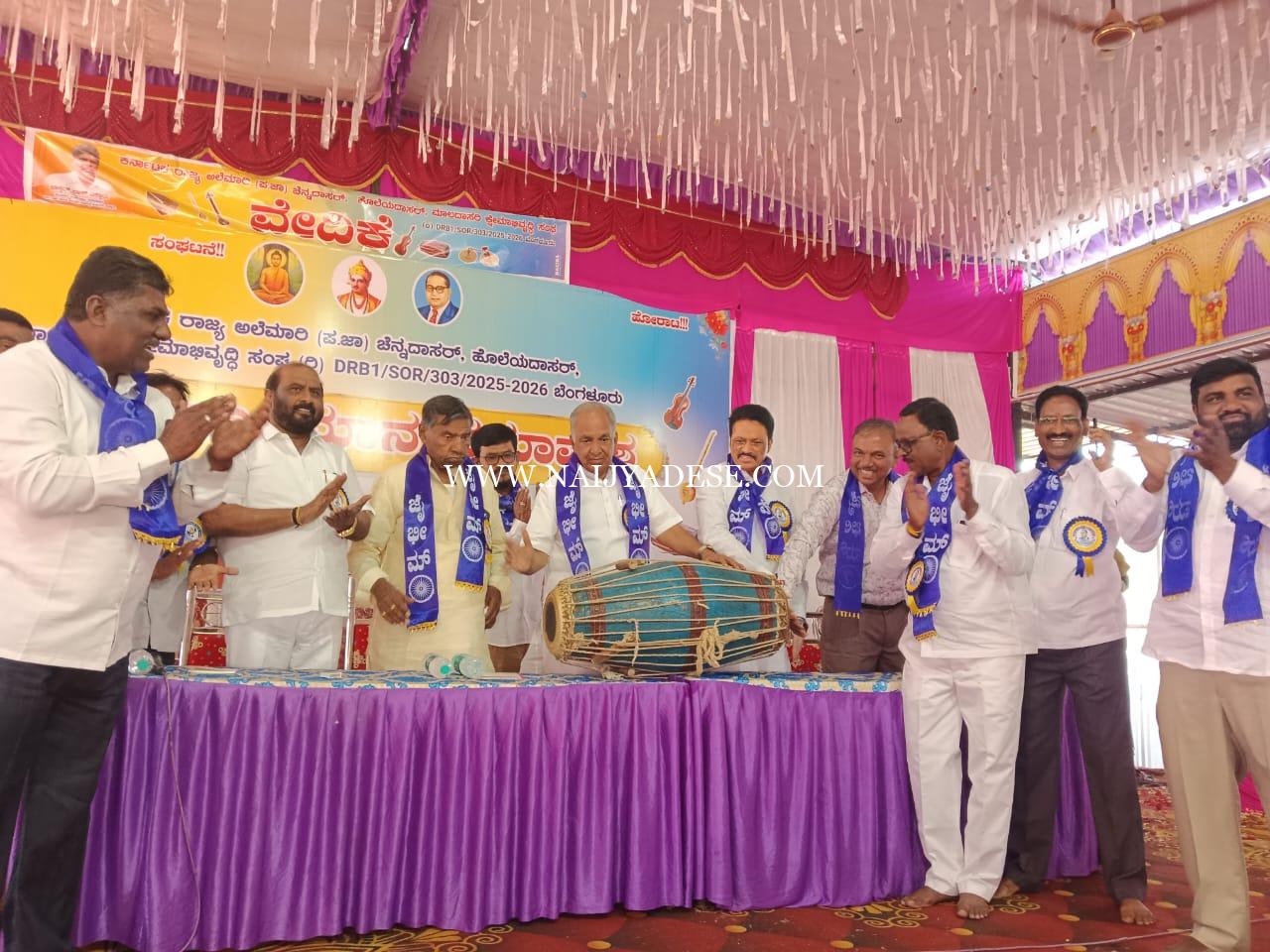 ಮಾನ್ವಿ: ಪಟ್ಟಣದ ಶ್ರೀ ಸತ್ಯಸಾಯಿ ಗಾರ್ಡನ್ನಲ್ಲಿ ಕರ್ನಾಟಕ ರಾಜ್ಯ ಅಲೆಮಾರಿ ಪ.ಜಾ. ಚನ್ನದಾಸರ್, ಹೊಲೆಯಾದಾಸರ್, ಮಾಲದಾಸರಿ ಕ್ಷೇಮಾಭಿವೃದ್ದಿ ಸಂಘ ಬೆಂಗಳೂರು ವತಿಯಿಂದ ನಡೆದ ಅಲೆಮಾರಿಗಳ ಬೃಹತ್ ಸಾಂಸ್ಕೃತಿಕ ಕಲಾ ಪ್ರದರ್ಶನ ಮತ್ತು ಸ್ವಾಭಿಮಾನ ಸಮಾವೇಶವನ್ನು ರಾಜ್ಯ ಸಣ್ಣ ನೀರಾವರಿ ಮತ್ತು ವಿಜ್ಞಾನ ತಂತ್ರಜ್ಞಾನ ಸಚಿವರಾದ ಎನ್.ಎಸ್.ಬೋಸರಾಜು ಉದ್ಘಾಟಿಸಿ ಮಾತನಾಡಿ ದೇಶದಲ್ಲಿ ಪ.ಜಾತಿ,ಪ.ಪಂಗಡ ಸಮುದಾಯಗಳ ಅಭಿವೃದ್ದಿಗಾಗಿ ಶೇ.17 ರಷ್ಟು ಒಳಮೀಸಲಾತಿಯನ್ನು ಕಲ್ಪಿಸುವ ಮೂಲಕ ಮೀಸಲಾತಿಯನ್ನು ಹೆಚ್ಚಾಳ ಮಾಡಿರುವುದು ಕರ್ನಾಟಕ ಮತ್ತು ತೆಲಂಗಾಣ ಸರ್ಕಾರಗಳು ಮಾತ್ರ ದೇಶದ ಉಳಿದ ರಾಜ್ಯಗಳಲ್ಲಿ ಇನ್ನು ಕೂಡ ಮೀಸಲಾತಿ ಹೆಚ್ಚಾಳ ಮಾಡಿಲ್ಲ ಮೀಸಲಾತಿ ಹೆಚ್ಚಳ ಮಾಡುವ ಸಮಯದಲ್ಲಿ ಸಮಾಜದಲ್ಲಿನ ಅತ್ಯಂತ ಸೂಕ್ಷ್ಮ ಮತ್ತು ಅತಿ ಕಡಿಮೆ ಜನಸಂಖ್ಯೆಯನ್ನು ಹೊಂದಿರುವ ಅಲೆಮಾರಿ ಸಮುದಾಯಗಳಿಗೆ ಮಿಸಲಾತಿಯ ಹಂಚಿಕೆಯಲ್ಲಿ ಲೋಪದೋಷಗಳಾಗಿರುವುದು ನಮ್ಮ ರಾಜ್ಯ ಸರ್ಕಾರಕ್ಕೆ ಕಂಡುಬಂದಿರುವದರಿಂದ 2 ಸಂಪುಟ ಸಭೆಯಲ್ಲಿ ಚರ್ಚೆ ನಡೆಸಲಾಗಿದ್ದು ಮುಂದಿನ ಒಂದು ತಿಂಗಳಲ್ಲಿ ನಡೆಯುವ 3 ನೇ ಸಚಿವ ಸಂಪುಟದಲ್ಲಿ ಅಲೇಮಾರಿ ಸಮುದಾಯಗಳಿಗೆ ಮೀಸಲಾತಿ ಹಂಚಿಕೆ ಮಾಡುವುದಕ್ಕೆ ಮುಖ್ಯಮಂತ್ರಿಗಳು ನಿರ್ಣಯ ಅಂಗಿಕರಿಸುವ ಮೂಲಲ ಸಂತೋಷದ ಸುದ್ದಿಯನ್ನು ನೀಡಲಿದ್ದಾರೆ ಅಲ್ಲಿಯವರೆಗೂ ಅಲೇಮಾರಿ ಸಮುದಾಯದವರು ತಾಳ್ಮೆಯನ್ನು ವಹಿಸಿ ವದಂತಿಗಳಿಗೆ ಕಿಗೋಡಬೇಡಿ ಸಮುದಾಯಗಳು ಸಂಘಟಿತವದಾಗ ಮಾತ್ರ ಹೋರಾಟ ಮಾಡಿ ಸರ್ಕಾರದಿಂದ ದೊರೆಯುವ ತಮ್ಮ ನ್ಯಾಯುತವಾದ ಹಕ್ಕುಗಳನ್ನು ಪಡೆಯುವುದಕ್ಕೆ ಸಾಧ್ಯವಾಗುತ್ತದೆ ರಾಜ್ಯದಲ್ಲಿ ಅಲೆಮಾರಿ ಪ.ಜಾ. ಚನ್ನದಾಸರ್, ಹೊಲೆಯಾದಾಸರ್, ಮಾಲದಾಸರಿ ಸಮುದಾಯಗಳು ರಾಜಕೀಯವಾಗಿ,ಆರ್ಥಿಕವಾಗಿ,ಸಮಾಜಿಕವಾಗಿ,ಅತ್ಯಂತ ಹಿಂದುಳಿದಿರುವ ರಾಜ್ಯದ ಇನ್ನೂ ಎರಡು ಸಮುದಾಯಗಳಿಗೆ ಮುಂದಿನ ದಿನಗಳಲ್ಲಿ ಅಭಿವೃದ್ದಿ ನಿಗಮಗಳನ್ನು ಸ್ಥಾಪನೆ ಮಾಡಲಾಗುವುದು. ರಾಯಚೂರು ನಗರ ಹಾಗೂ ಮಾನ್ವಿ ಪಟ್ಟಣದಲ್ಲಿ ಅಲೆಮಾರಿ ಸಾಂಸ್ಕೃತಿಕ ಭವನ ನಿರ್ಮಾಣ, ಅಲೆಮಾರಿ ಗ್ರಂಥಾಲಯಕ್ಕೆ ಅಗತ್ಯವಾದ ಕ್ರಮ ಕೈಗೊಳ್ಳಲಾಗುವುದು ನಿಮ್ಮ ಬೇಡಿಕೆಗಳನ್ನು ಹಂತ,ಹAತವಾಗಿ ಈಡೆರಿಸುವುದಕ್ಕೆ ಅಗತ್ಯ ಕ್ರಮ ಕೈಗೊಳ್ಳಲಾಗುವುದು ಎಂದು ತಿಳಿಸಿದರು.