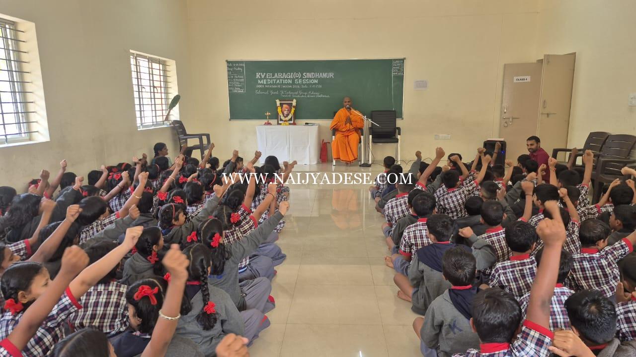 ಸಿಂಧನೂರಿನ ಕೇಂದ್ರೀಯ ವಿದ್ಯಾಲಯ ಶಾಲೆಯಲ್ಲಿ ವಿವೇಕ ಸಪ್ತಾಹದ ಅಂಗವಾಗಿ ಹಮ್ಮಿಕೊಂಡಿದ್ದ ವಿಶೇಷ ಕಾರ್ಯಕ್ರಮವು ಜ್ಞಾನ, ಸಂಸ್ಕಾರ ಮತ್ತು ಆತ್ಮಪರಿಶೀಲನೆಯ ವಾತಾವರಣದಲ್ಲಿ ಯಶಸ್ವಿಯಾಗಿ ನಡೆಯಿತು. ಕಾರ್ಯಕ್ರಮದಲ್ಲಿ ಪೂಜ್ಯ ಸ್ವಾಮೀಜಿಯವರು ಮುಖ್ಯ ಅತಿಥಿಯಾಗಿ ಭಾಗವಹಿಸಿ ವಿದ್ಯಾರ್ಥಿಗಳಿಗೆ ಧ್ಯಾನದಿಂದ ಮನಸ್ಸಿನ ಏಕಾಗ್ರತೆ, ಶಾಂತಿ ಮತ್ತು ಆತ್ಮನಿಯಂತ್ರಣ ಸಾಧಿಸುವ ಮಹತ್ವವನ್ನು ವಿವರಿಸಿದರು. ಧ್ಯಾನವು ಅಧ್ಯಯನದಲ್ಲಿ ಉತ್ತಮ ಸಾಧನೆಗೆ ಮಾತ್ರವಲ್ಲದೆ ಜೀವನದಲ್ಲಿ ಸಮತೋಲನ ಕಾಯ್ದುಕೊಳ್ಳಲು ಸಹ ಸಹಾಯಕವಾಗುತ್ತದೆ ಎಂದು ಹೇಳಿದರು.