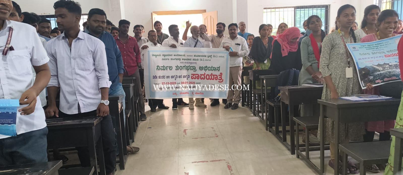 ವಿವಿಧ ಕಾಲೇಜ್ ಗಳಲ್ಲಿ. ಜಾಗೃತಿ ಅಭಿಯಾನವನ್ನು ಹಮ್ಮಿಕೊಂಡಿದ್ದು …ನಿರ್ಮಲ ತುಂಗಭದ್ರಾ ಅಭಿಯಾನ ಸಮಿತಿ, ಪರ್ಯಾವರಣ ಟ್ರಸ್ಟ್ ಸಹಯೋಗದಲ್ಲಿ ನಡೆದಿರುವ ಅಭಿಯಾನದ ಕುರಿತು , “ಉತ್ತರ ಭಾರತದಲ್ಲಿ ಗಂಗಾನದಿ ಶುದ್ದೀಕರಣಕ್ಕಾಗಿ ಹೋರಾಟ ಮಾಡಲಾಗಿತ್ತು. ರಾಜ್ಯ ದಲ್ಲಿ ಕಾವೇರಿ, ತುಂಗಭದ್ರಾ ನದಿ ವಿಚಾರವಾಗಿ ಹೋರಾಟ ರೂಪಿಸುವ ಚಿಂತನೆ ನಡೆದಾಗ, ತುಂಗಭದ್ರಾನದಿಯನ್ನು ಆಯ್ಕೆಮಾಡಿಕೊಂಡಿದ್ದೇವೆ.