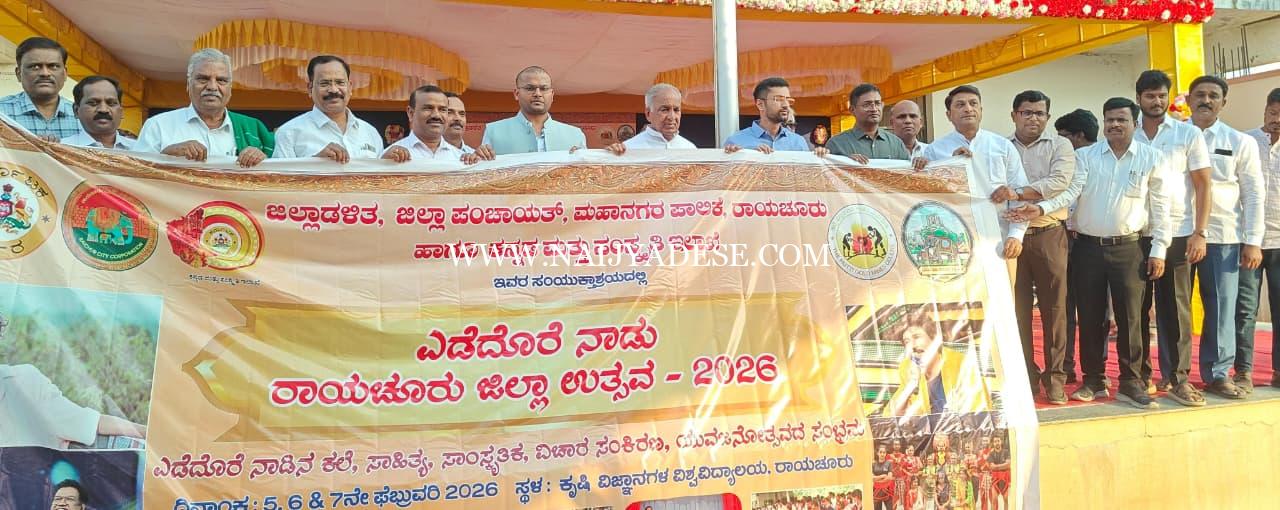 ರಾಯಚೂರು ಜನವರಿ 21 (ಕರ್ನಾಟಕ ವಾರ್ತೆ): ಜಿಲ್ಲಾಡಳಿತ, ಜಿಲ್ಲಾ ಪಂಚಾಯತ್, ಮಹಾನಗರ ಪಾಲಿಕೆ ಹಾಗೂ ಕನ್ನಡ ಮತ್ತು ಸಂಸ್ಕೃತಿ ಇಲಾಖೆಗಳ ಸಂಯುಕ್ತಾಶ್ರಯದಲ್ಲಿ ಫೆಬ್ರವರಿ 5ರಿಂದ ಫೆಬ್ರವರಿ 7ರವರೆಗೆ ನಿಗದಿಯಾದ ಎಡೆದೊರೆ ನಾಡು ರಾಯಚೂರು ಜಿಲ್ಲಾ ಉತ್ಸವ-2026ರ ಕಾರ್ಯಕ್ರಮದ ಪ್ರಚಾರದ ಪೋಸ್ಟರ್, ಬ್ಯಾನರ್, ಕಾರ್ಯಕ್ರಮದ ವೇಳಾಪಟ್ಟಿ ಸೇರಿದಂತೆ ಇನ್ನೀತರ ಕಾರ್ಯಕ್ರಮಗಳಿಗೆ ಸಣ್ಣ ನೀರಾವರಿ, ವಿಜ್ಞಾನ ಮತ್ತು ತಂತ್ರಜ್ಞಾನ ಸಚಿವರಾದ ಎನ್.ಎಸ್.ಬೋಸರಾಜು ಅವರು ಚಾಲನೆ ನೀಡಿದರು.