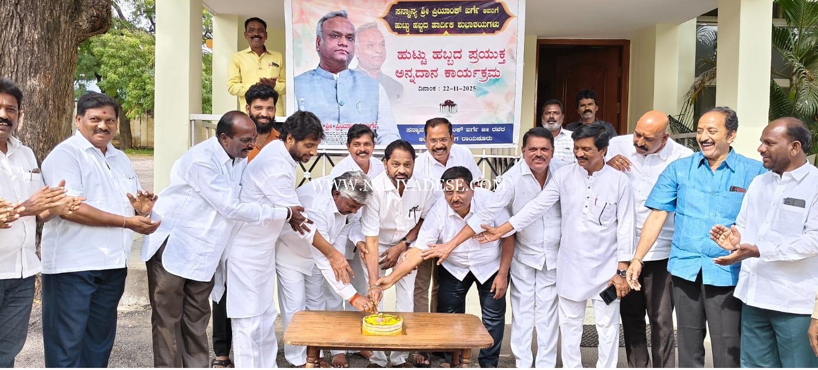 ರಾಯಚೂರು ಜಿಲ್ಲಾ ಕಾಂಗ್ರೆಸ್ ವತಿಯಿಂದ 22 ನವೆಂಬರ್ ಕರ್ನಾಟಕ ರಾಜ್ಯದ ಭಾರತೀಯ ರಾಷ್ಟ್ರೀಯ ಕಾಂಗ್ರೆಸ್ನ ಪ್ರಮುಖ ನಾಯಕರು ಹಾಗೂ ಪ್ರಸ್ತುತ ಸಚಿವ ಸಂಪುಟದಲ್ಲಿ ಗ್ರಾಮೀಣಾಭಿವೃದ್ಧಿ ಮತ್ತು ಪಂಚಾಯತ್ ರಾಜ್ ಸಚಿವರು . ಚಿತ್ತಾಪುರ ಕ್ಷೇತ್ರದ ಶಾಸಕರು ಹಾಗೂ ಡಿಜಿಟಲ್ ಆಡಳಿತ, ಗ್ರಾಮೀಣ ಸಬಲೀಕರಣ ಮತ್ತು ರಾಜಕೀಯದಲ್ಲಿ ಯುವಜನರ ಪಾಲ್ಗೊಳ್ಳುವಿಕೆಯನ್ನು ಸಕ್ರಿಯವಾಗಿ ಪ್ರತಿಪಾದಿಸುತ್ತಿರುವ. ಕಾಂಗ್ರೆಸ್ ರಾಷ್ಟ್ರೀಯ ಅಧ್ಯಕ್ಷ ಮಲ್ಲಿಕಾರ್ಜುನ ಖರ್ಗೆ ಅವರ ಸುಪುತ್ರರಾಗಿರುವ ಪ್ರಿಯಾಂಕಾ ಖರ್ಗೆ ರವರ ಹುಟ್ಟುಹಬ್ಬವನ್ನು ಕೇಕ್ ಕಟ್ ಮಾಡಿ ಅಣ್ಣ ಪ್ರಸಾದ್ ಮಾಡಿಸುವ ಮೂಲಕ ಸಿಹಿ ತಿನಿಸಿ ಆಚರಣೆ ಮಾಡಲಾಯಿತು..