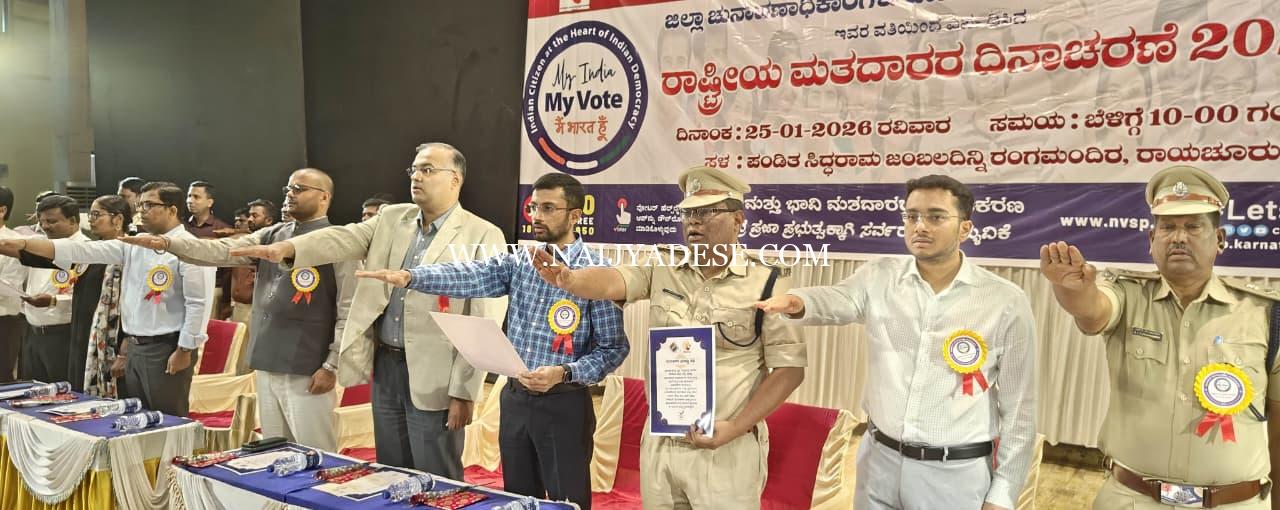 ರಾಯಚೂರು ಜನವರಿ 25 (ಕರ್ನಾಟಕ ವಾರ್ತೆ): ಇಲ್ಲಿನ ಜಿಲ್ಲಾಡಳಿತದಿಂದ ಭಾರತ ಚುನಾವಣಾ ಆಯೋಗದ ಸಹಯೋಗದಲ್ಲಿ ಜನವರಿ 25ರಂದು ರಾಷ್ಟ್ರೀಯ ಮತದಾರರ ದಿನಾಚರಣೆ ಕಾರ್ಯಕ್ರಮವು ನಗರದ ಪಂಡಿತ ಸಿದ್ಧರಾಮ ಜಂಬಲದಿನ್ನಿ ರಂಗಮಂದಿರದಲ್ಲಿ ನಡೆಯಿತು.